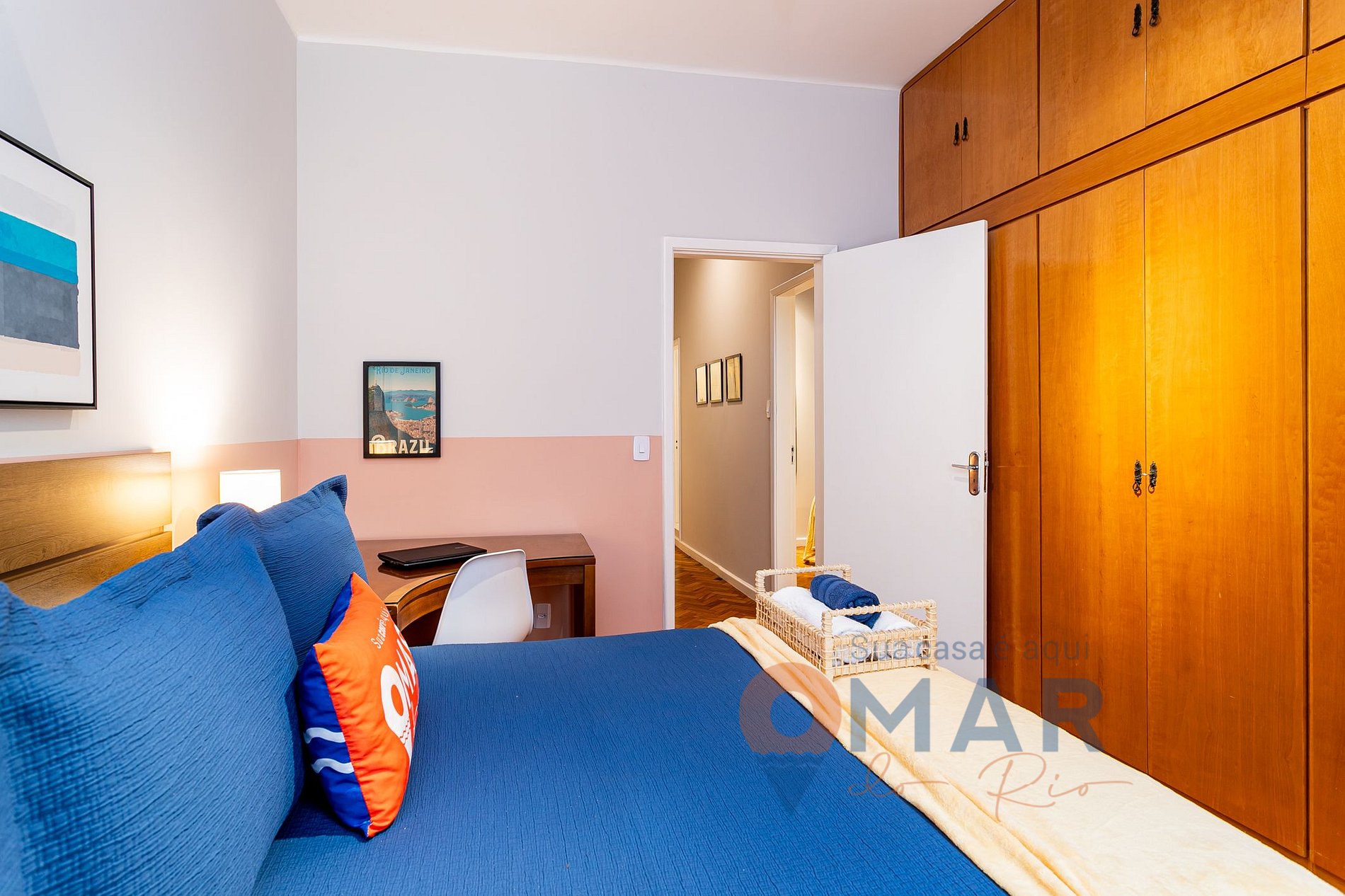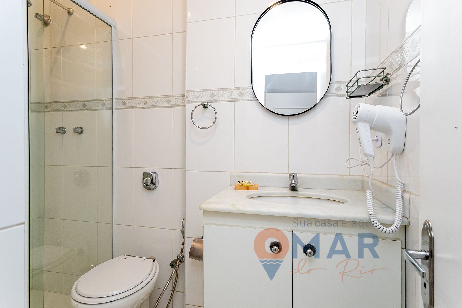 Copacabana is located in Rio de Janeiro's stunning South Zone and is widely recognized for its beautiful beach and exuberant promenade lined with black and white Portuguese stones that form a mosaic in the shape of ocean waves. In addition to this natural beauty, a variety of conveniences await just a few steps away, including markets, pharmacies, restaurants, snack bars and bars, making your stay even more comfortable and practical.