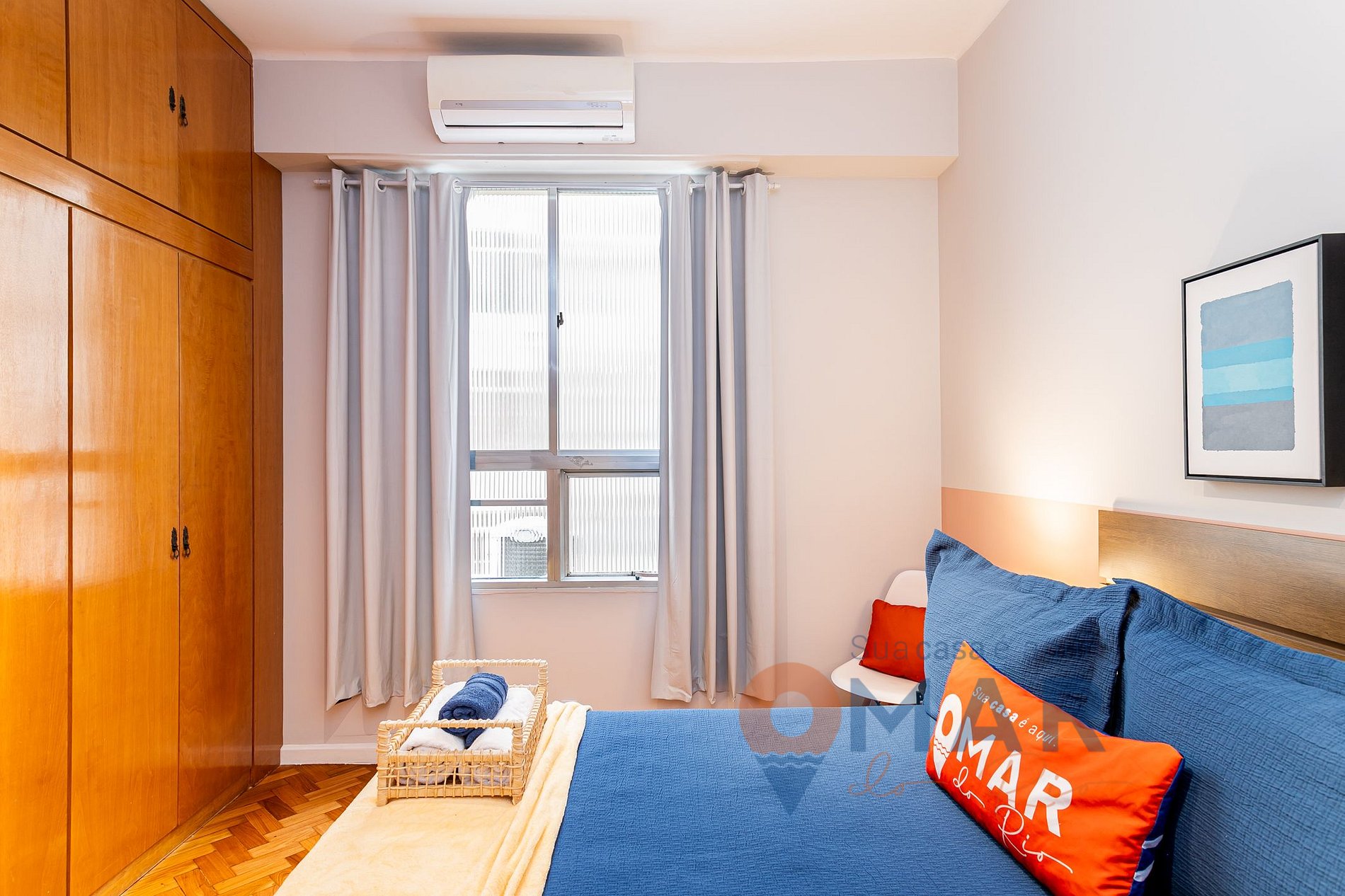 Copacabana is located in Rio de Janeiro's stunning South Zone and is widely recognized for its beautiful beach and exuberant promenade lined with black and white Portuguese stones that form a mosaic in the shape of ocean waves. In addition to this natural beauty, a variety of conveniences await just a few steps away, including markets, pharmacies, restaurants, snack bars and bars, making your stay even more comfortable and practical.