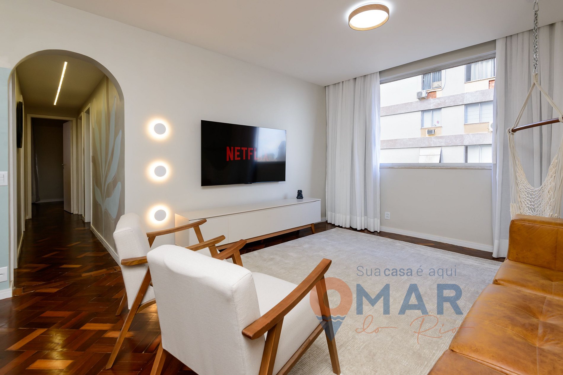 Spacious 3-bedroom apartment for up to 6 people in Copacabana, finely decorated and designed to offer comfort and a unique lodging experience. It is only 16 minutes from the beach and 10 minutes from the Siqueira Campos subway station, and offers 2 parking spaces, 600 Mbps Wi-Fi, air conditioning, Smart TV, workstation, and full kitchen. Surrounded by markets, restaurants, and cafes, it combines practicality, sophistication, and an excellent location to experience the best of Copacabana.