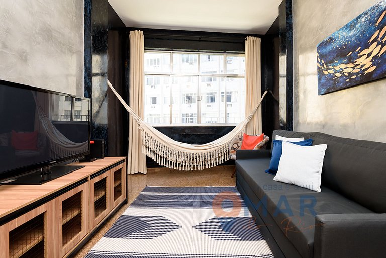 Copacabana is located in Rio de Janeiro's stunning South Zone and is widely recognized for its beautiful beach and exuberant promenade lined with black and white Portuguese stones that form a mosaic in the shape of ocean waves. In addition to this natural beauty, a variety of conveniences await just a few steps away, including markets, pharmacies, restaurants, snack bars and bars, making your stay even more comfortable and practical.