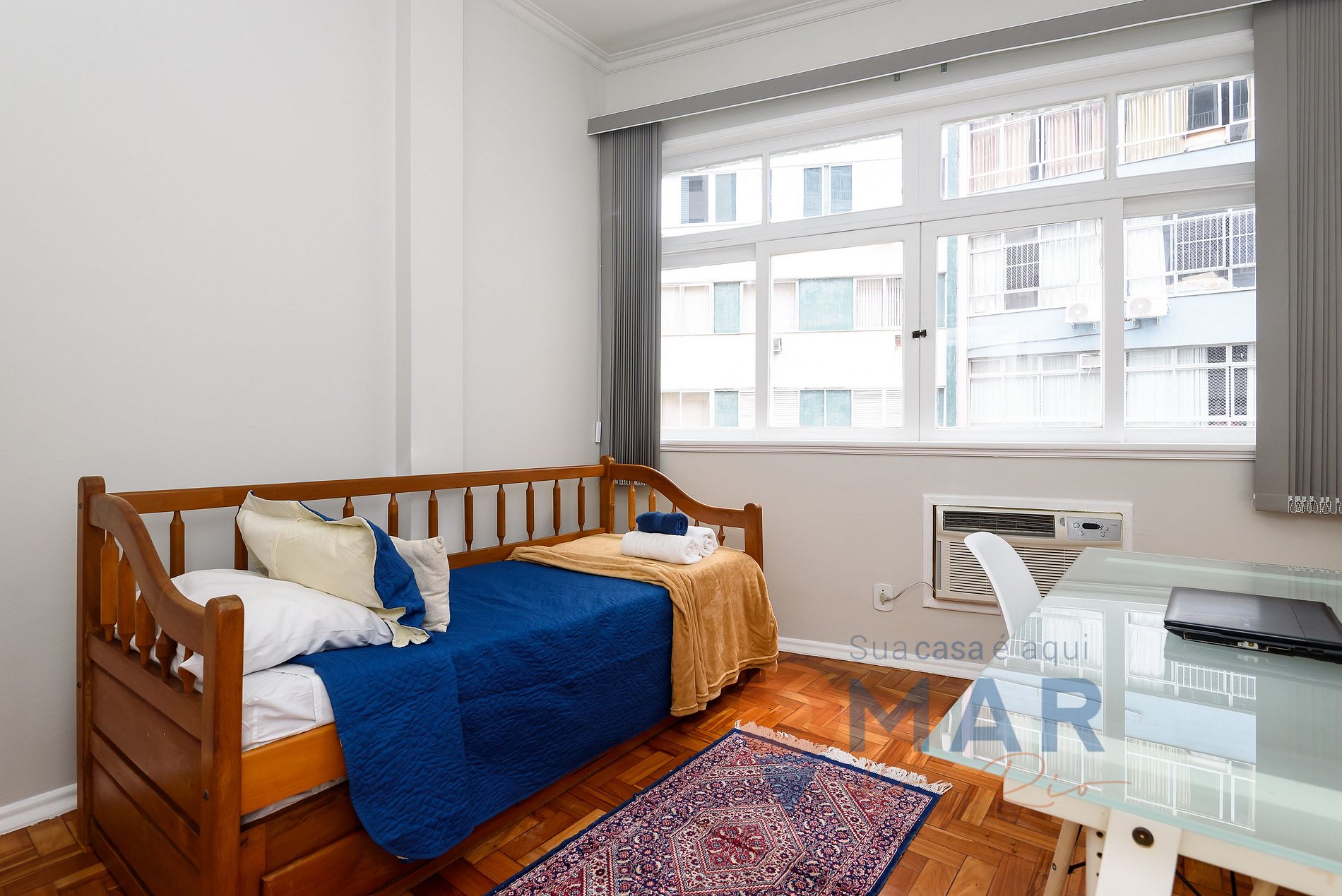 Copacabana is located in Rio de Janeiro's stunning South Zone and is widely recognized for its beautiful beach and exuberant promenade lined with black and white Portuguese stones that form a mosaic in the shape of ocean waves. In addition to this natural beauty, a variety of conveniences await just a few steps away, including markets, pharmacies, restaurants, snack bars and bars, making your stay even more comfortable and practical.