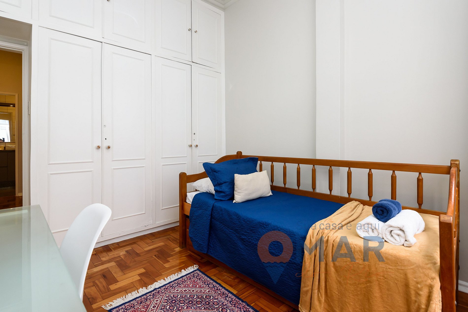 Apartamento bien ubicado en Copacabana cerca del metro y estaciones de bus entre otra cosas, la cocina esta muy bien dotada para cocinar y es grande, los baños son limpios y bien dotados, la habitacion principal tiene una cama grande y comoda sin embargo la cama de los huespedes es un poco pequeña y el colchon no es tan comodo, la lavadora es muy buena, ideal para estadias largas en RIO.