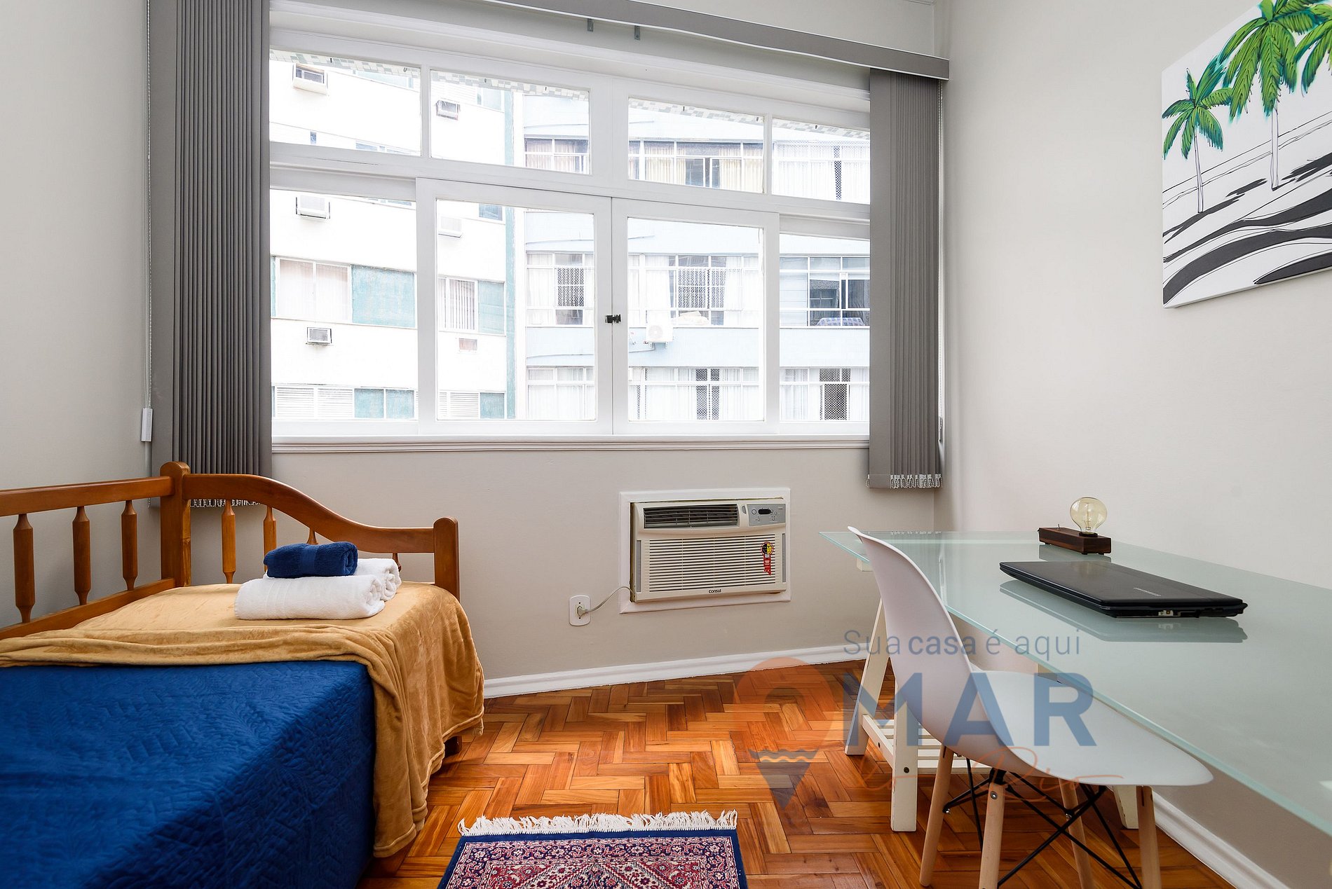 Apartamento bien ubicado en Copacabana cerca del metro y estaciones de bus entre otra cosas, la cocina esta muy bien dotada para cocinar y es grande, los baños son limpios y bien dotados, la habitacion principal tiene una cama grande y comoda sin embargo la cama de los huespedes es un poco pequeña y el colchon no es tan comodo, la lavadora es muy buena, ideal para estadias largas en RIO.
