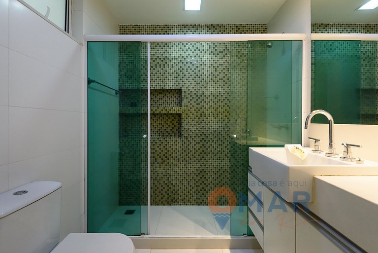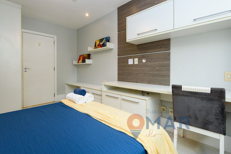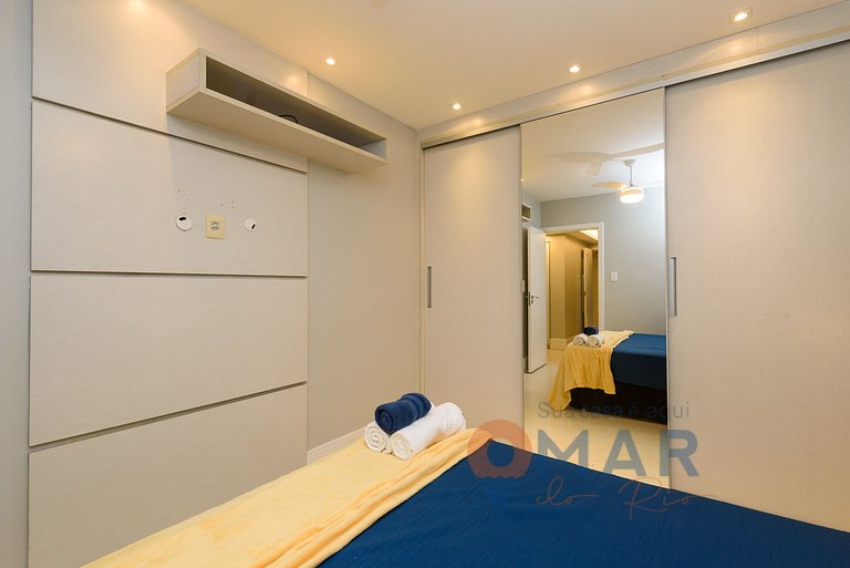 Copacabana is located in Rio de Janeiro's stunning South Zone and is widely recognized for its beautiful beach and exuberant promenade lined with black and white Portuguese stones that form a mosaic in the shape of ocean waves. In addition to this natural beauty, a variety of conveniences await just a few steps away, including markets, pharmacies, restaurants, snack bars and bars, making your stay even more comfortable and practical.