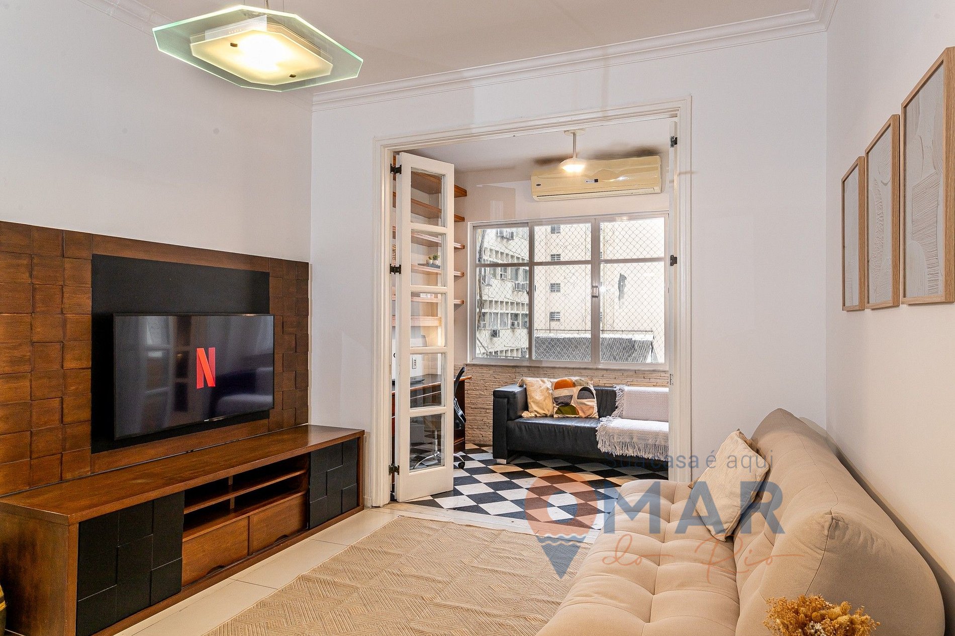 Living room: Sofa, 50'' Smart TV, and split air conditioning.