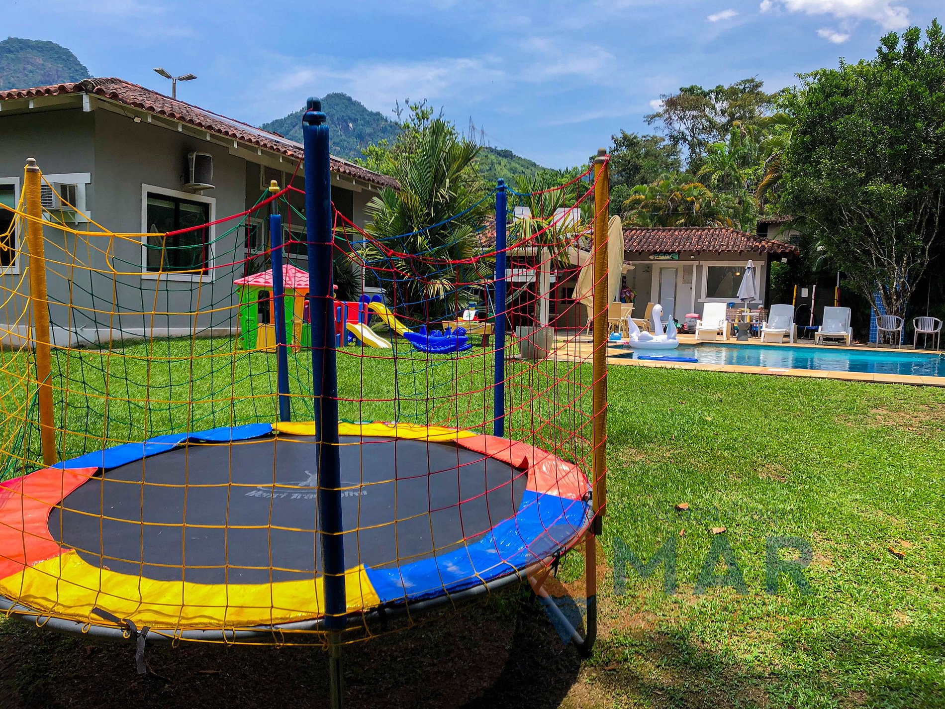 Enjoy unforgettable days in Angra at Smith Beach House. This incredible house, designed for families, offers a private leisure area with a pool, sauna, gourmet area, Smart TV, Wi-Fi, games, videogames, and a fully kitchen. Children are guaranteed to have fun with toys and a trampoline. There are three air-conditioned suites for up to ten people and one baby up to two years old. The condominium also offers direct access to the beach. A perfect house for enjoying unique moments with your family.