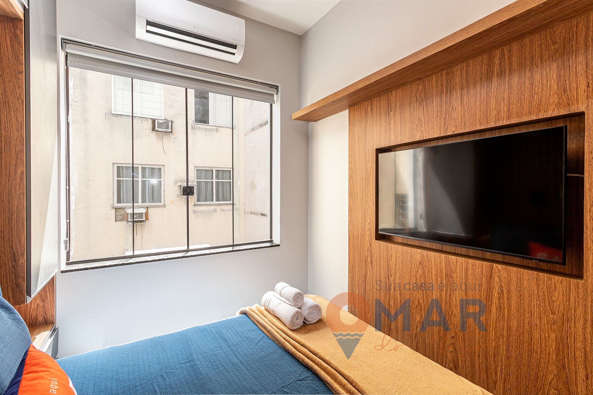 Disfrute de este moderno apartamento, con muebles a medida, a pocos pasos de la famosa playa de Copacabana. Totalmente equipado, el espacio ofrece internet de alta velocidad (700 Mbps), Smart TV, aire acondicionado, cafetera y una cocina completa, garantizando todo el confort necesario para una estancia perfecta en Río de Janeiro. Ideal para parejas, pero con capacidad para hasta 3 personas.