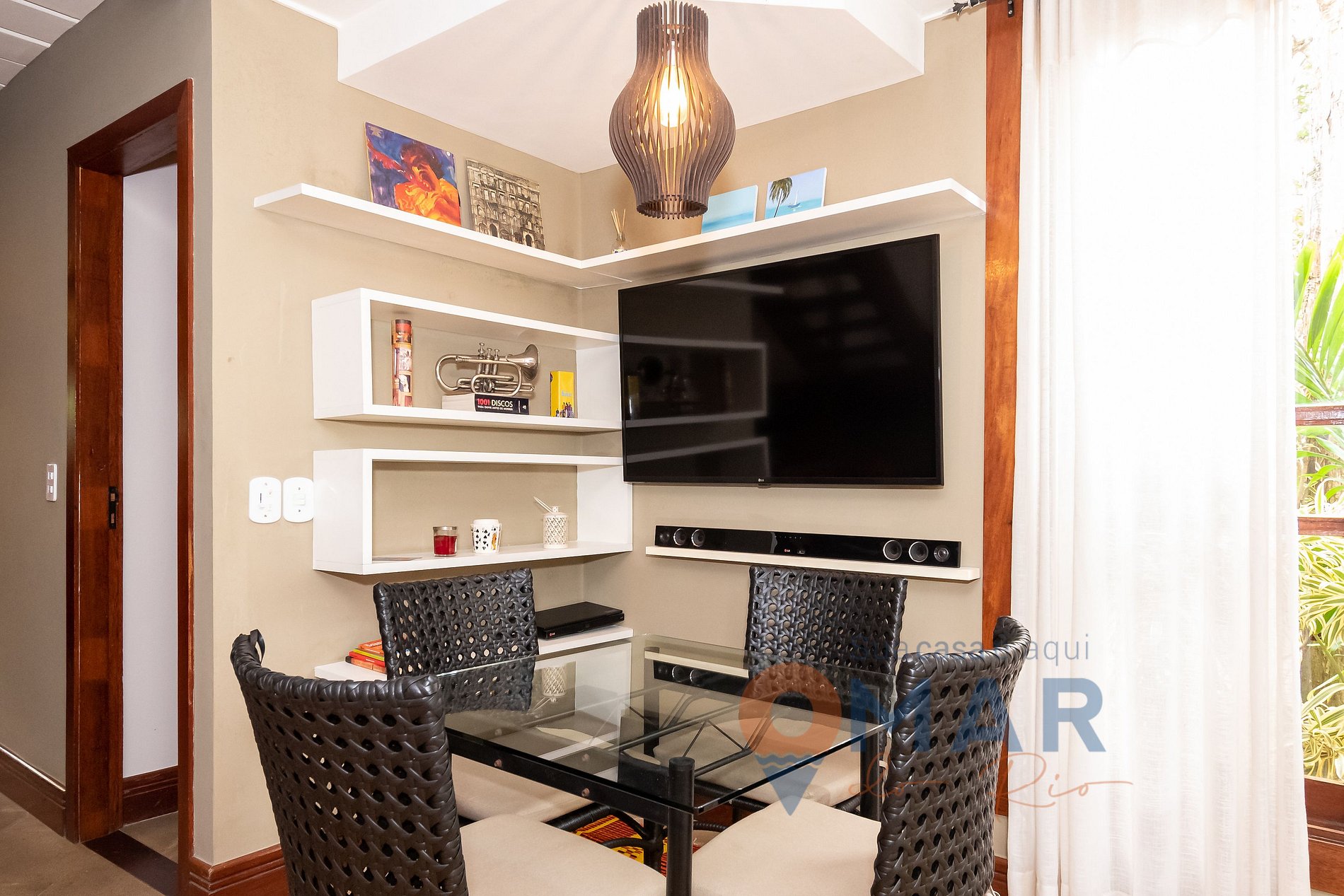 The house is complete with a range of amenities, spacious and fully equipped rooms, providing the comfort you deserve. The accommodation offers air-conditioning and television in every room, as well as 500mbps internet. In addition, the Vento Forte condominium offers various shared spaces to make your stay even more special. And if you want to enjoy a sunny day by the sea, the beautiful Manguinhos Beach is just a short walk away, at only 500m.