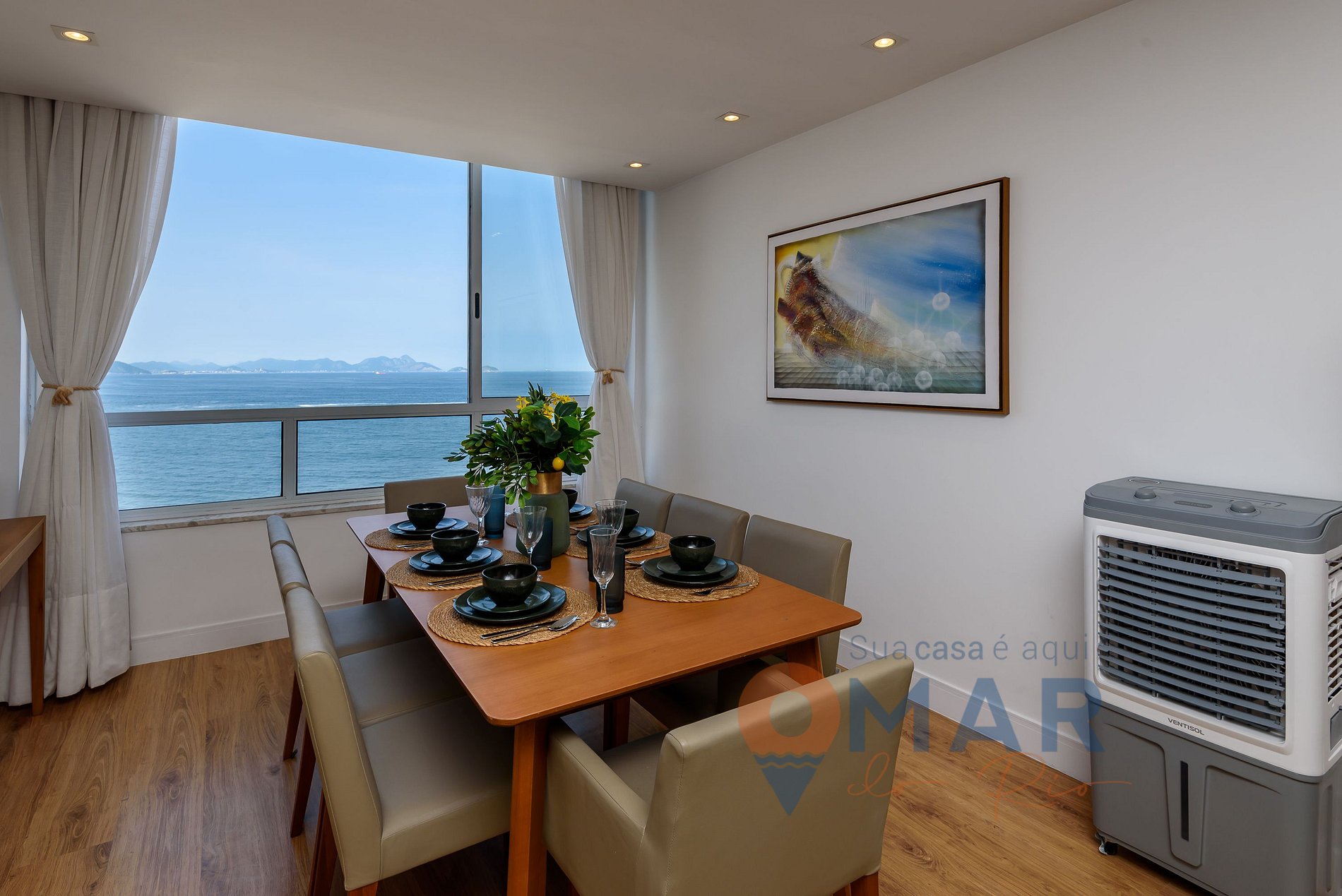 Luxury beachfront apartment in Copacabana, on the iconic Avenida Atlântica, featuring a garage and 4 air-conditioned bedrooms. It includes an open-concept living and dining area, a fully equipped kitchen, a washer and dryer, and Wi-Fi. The living room is a major highlight, with a breathtaking view of the beach, perfect for enjoying the sunrise. Elegant and welcoming spaces, designed to offer a sophisticated experience with the true essence of Rio de Janeiro.