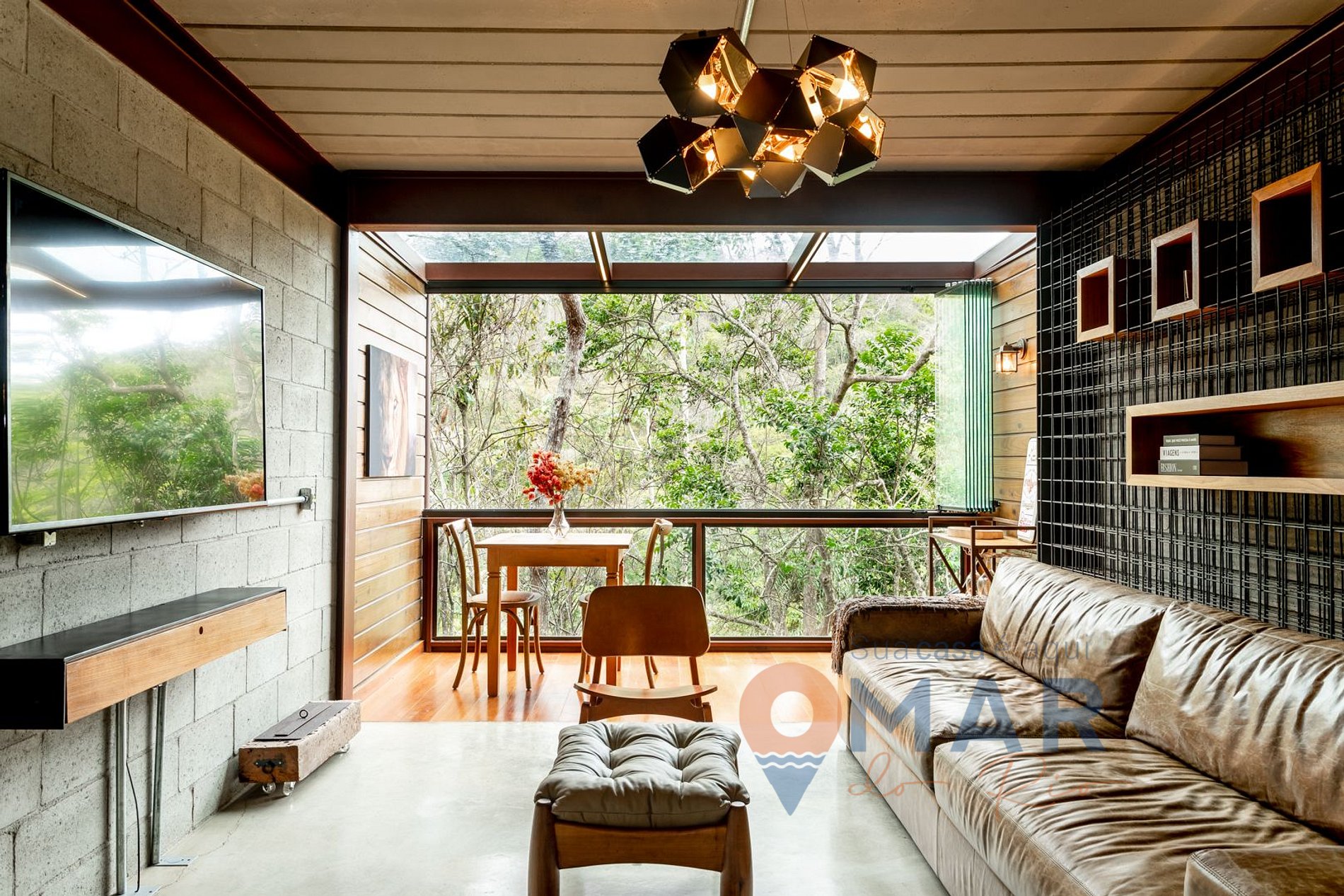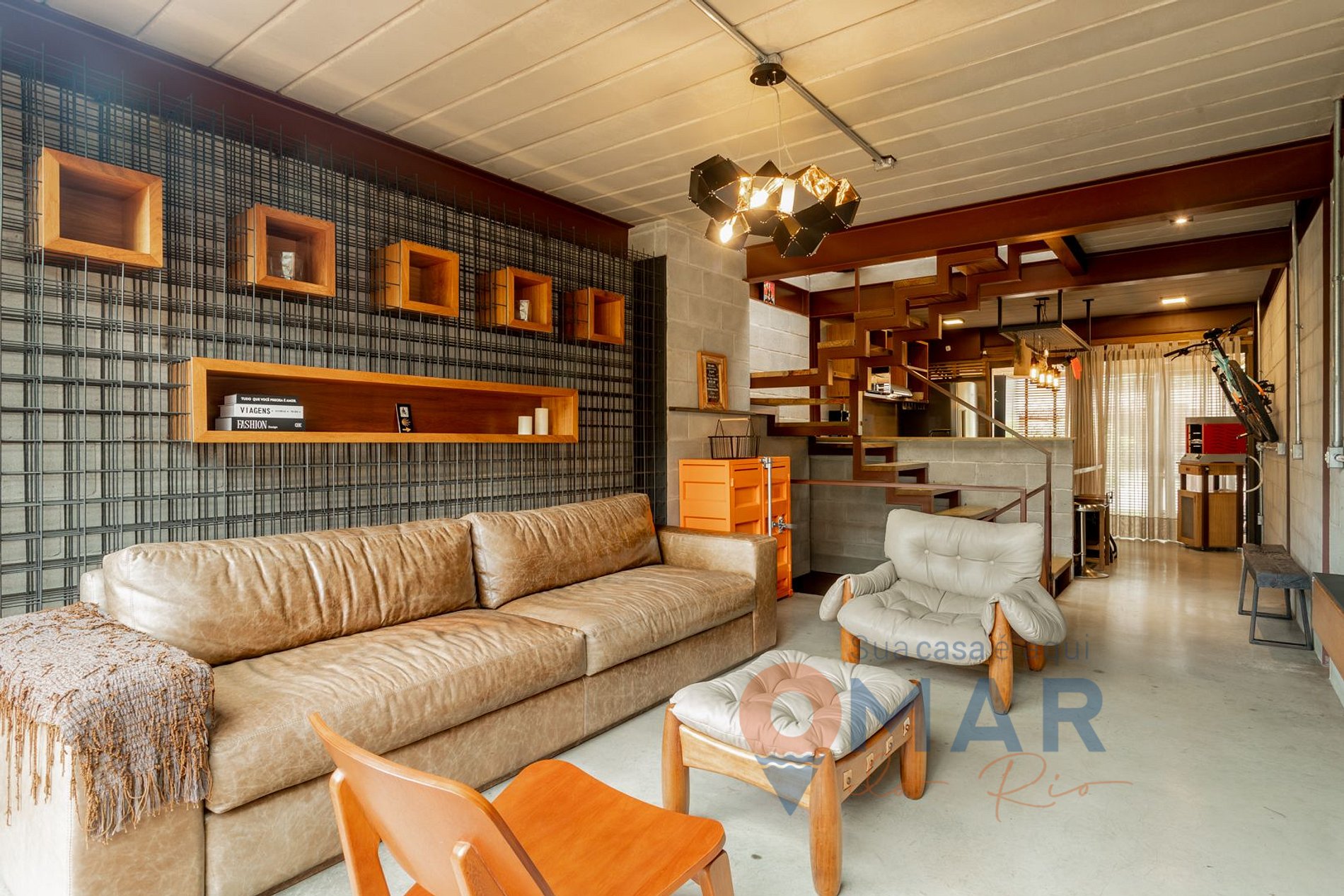 Além de toda a decoração industrial, que é de muito bom gosto, não posso deixar de mencionar a Poltrona Mole, assinada pelo Design Sergio Rodrigues, ela está posicionada bem perto da varanda, na sala, onde atrás tem um 'quadro' natural ( uma mata densa e preservada), vale a pena a contemplação e também fazer algumas fotos.