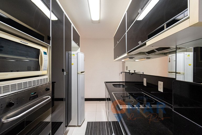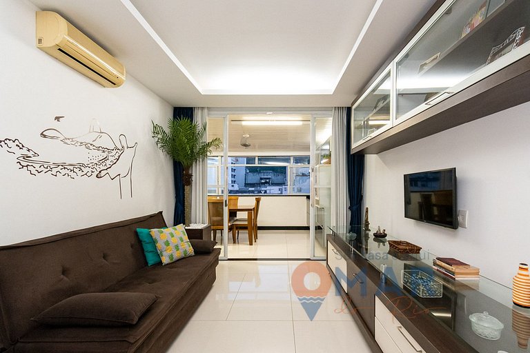 Copacabana is located in Rio de Janeiro's stunning South Zone and is widely recognized for its beautiful beach and exuberant promenade lined with black and white Portuguese stones that form a mosaic in the shape of ocean waves. In addition to this natural beauty, a variety of conveniences await just a few steps away, including markets, pharmacies, restaurants, snack bars and bars, making your stay even more comfortable and practical.