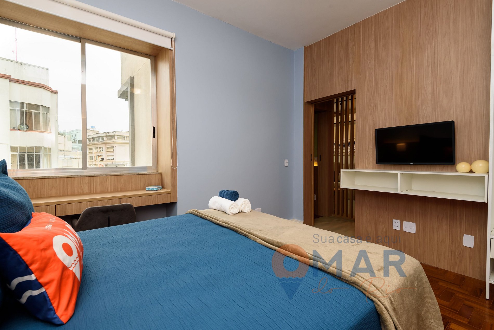 Copacabana is located in Rio de Janeiro's stunning South Zone and is widely recognized for its beautiful beach and lush promenade lined with black and white Portuguese stones that form a mosaic in the shape of ocean waves. In addition to this natural beauty, a variety of conveniences await just a few steps away, including markets, pharmacies, restaurants, snack bars and bars, making your stay even more comfortable and practical.