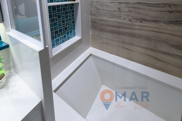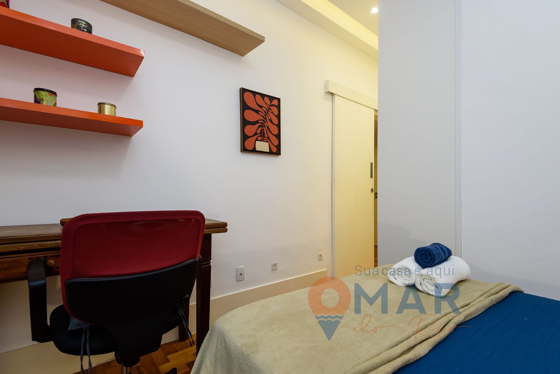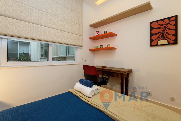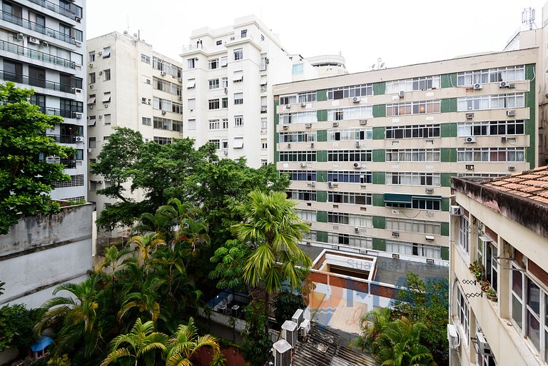 Copacabana is located in Rio de Janeiro's stunning South Zone and is widely recognized for its beautiful beach and exuberant promenade lined with black and white Portuguese stones that form a mosaic in the shape of ocean waves. In addition to this natural beauty, a variety of conveniences await just a few steps away, including markets, pharmacies, restaurants, snack bars and bars, making your stay even more comfortable and practical.