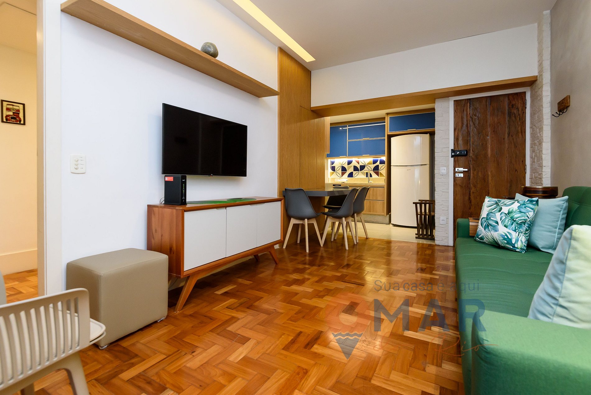 Copacabana is located in Rio de Janeiro's stunning South Zone and is widely recognized for its beautiful beach and exuberant promenade lined with black and white Portuguese stones that form a mosaic in the shape of ocean waves. In addition to this natural beauty, a variety of conveniences await just a few steps away, including markets, pharmacies, restaurants, snack bars and bars, making your stay even more comfortable and practical.