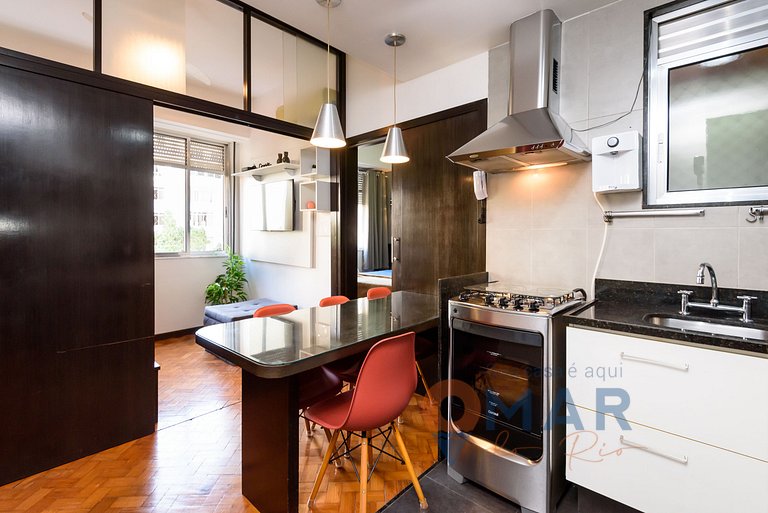 Experience Copacabana in this modern and cozy apartment, just 200m from the beach and 500m from the Cantagalo metro station! With 500Mbps internet, a comfortable living room equipped with Smart TV and air conditioning, as well as a suite with a Queen bed, Smart TV and air conditioning. The full kitchen, with appliances and utensils, guarantees practicality for your meals. Surrounded by lively bars, restaurants, markets and tourist attractions, it is the perfect choice for your stay.