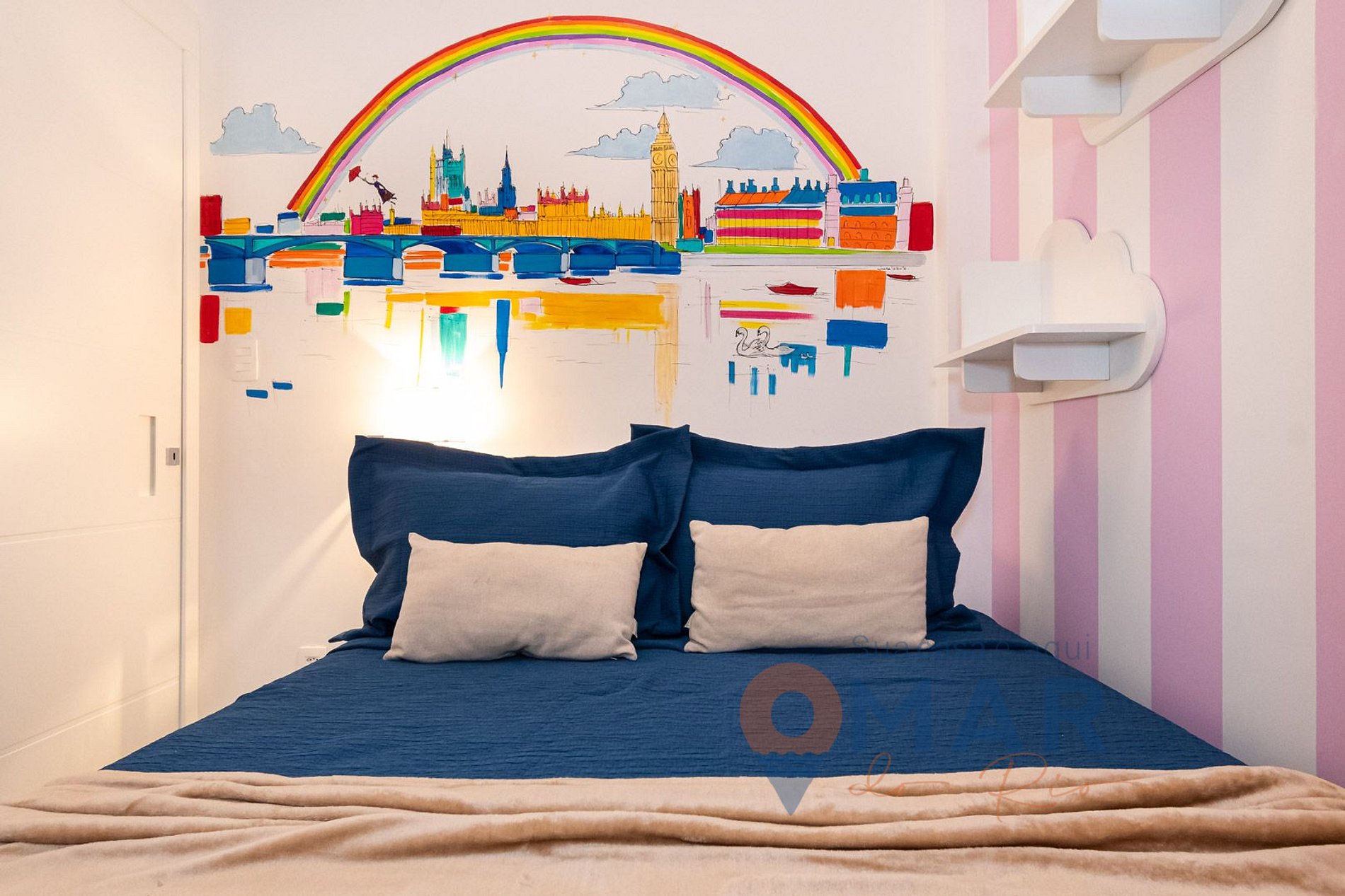Master bedroom - Italy: Queen bed (198cm x 158cm), split air conditioning, blackout curtain, dressing table and closet with hangers and full-length mirror.