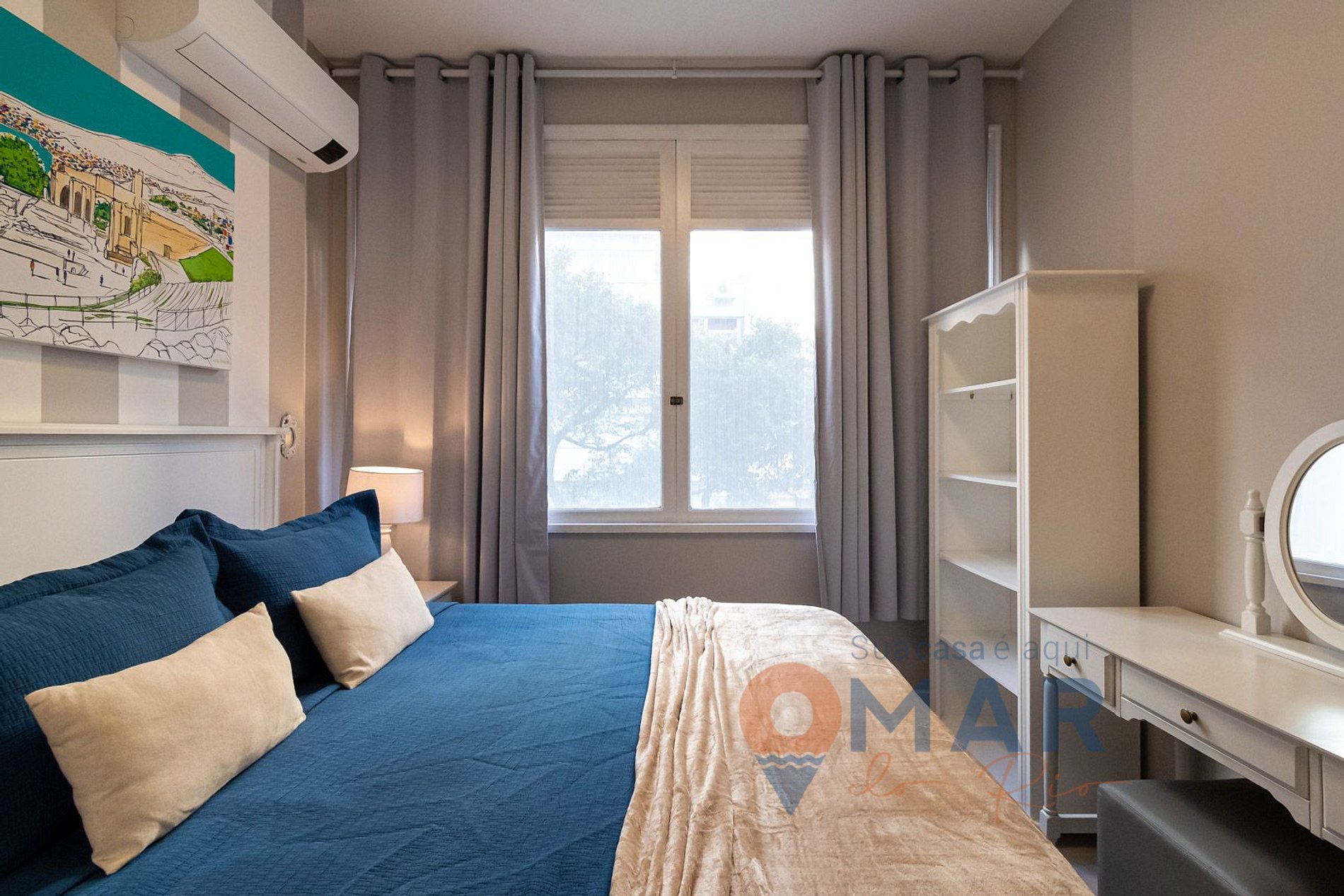 Copacabana is located in Rio de Janeiro's stunning South Zone and is widely recognized for its beautiful beach and exuberant promenade lined with black and white Portuguese stones that form a mosaic in the shape of ocean waves. In addition to this natural beauty, a variety of conveniences await just a few steps away, including markets, pharmacies, restaurants, snack bars and bars, making your stay even more comfortable and practical.