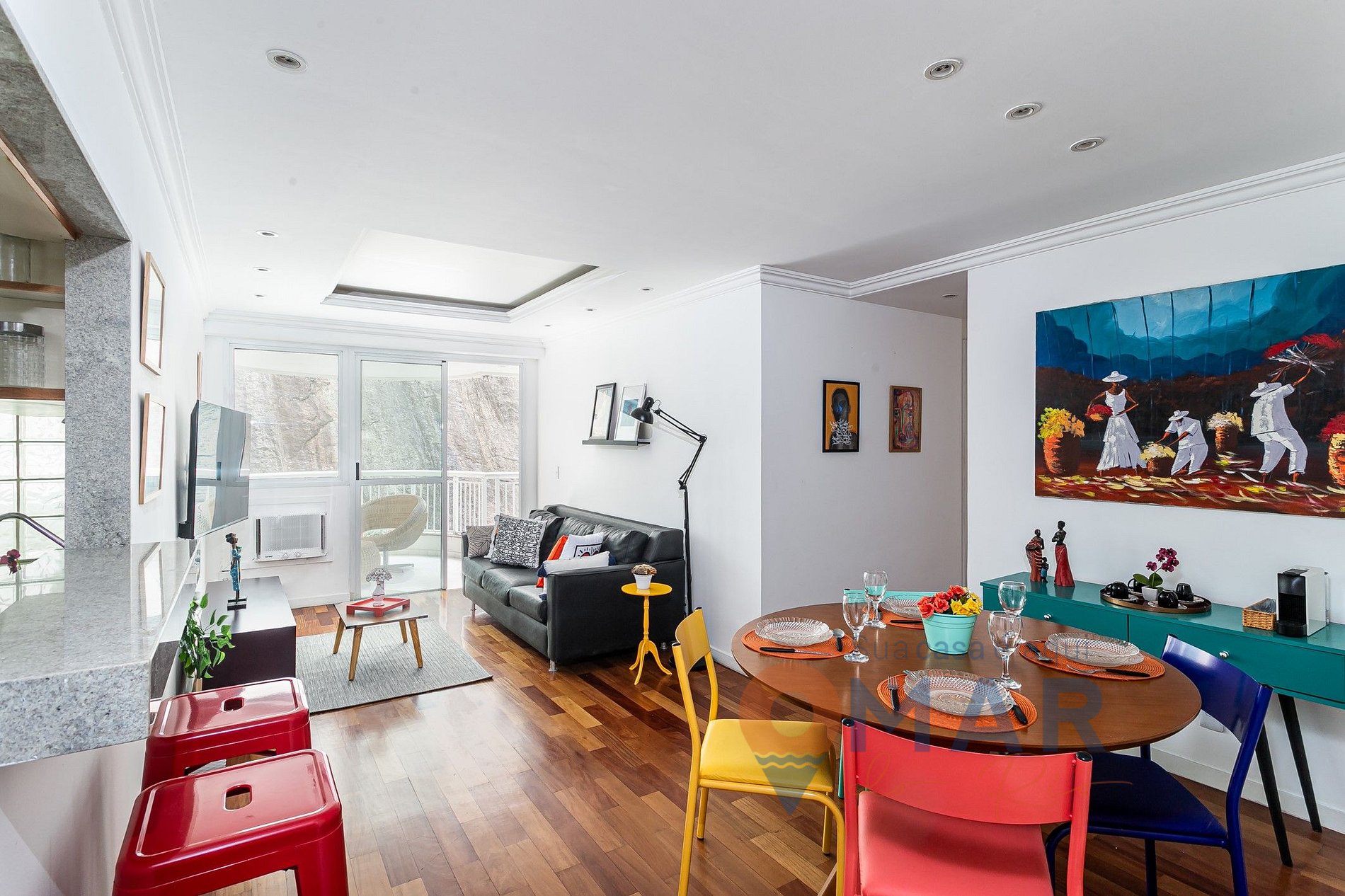 Aproveite o melhor do Rio neste elegante apartamento com dois quartos, uma varanda arejada e uma cozinha totalmente equipada. O terraço oferece uma vista encantadora da Baía de Guanabara, perfeita para momentos relaxantes. A unidade inclui uma vaga de estacionamento e está localizada em um condomínio com piscina. A poucos passos do Shopping Rio Sul, você estará perto do melhor de Botafogo e a poucos minutos da Praia de Copacabana.