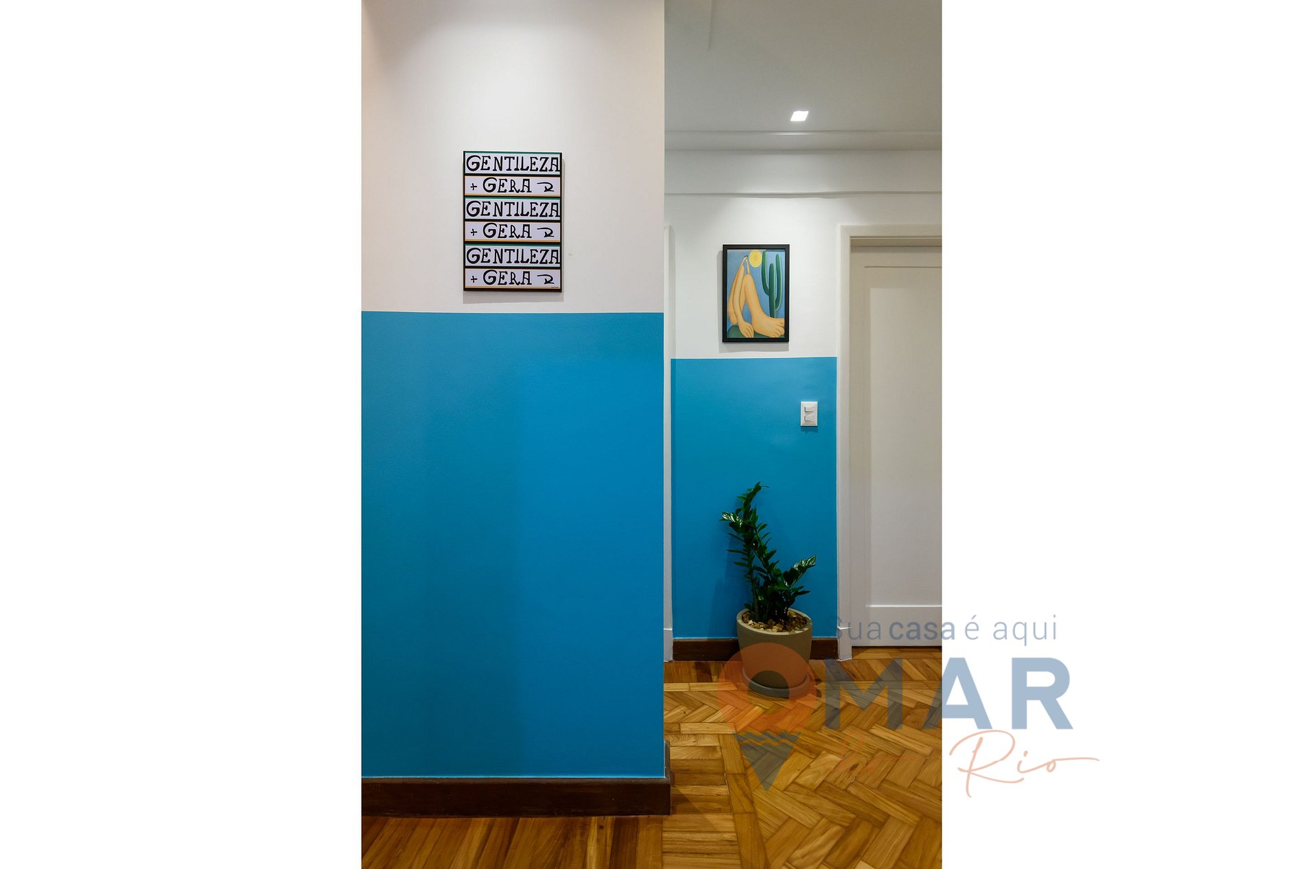 Modern 2-bedroom air-conditioned apartment, completely renovated and decorated, with sea views, located 30 meters from Copacabana Beach in Posto 6. Equipped with 250mbps high-speed Internet, Workstation, air conditioning in the living room, 50" Smart TV and Alexa (EchoDot). This accommodation also has a full kitchen with a stove, coffee machine, microwave, fridge, utensils and more.