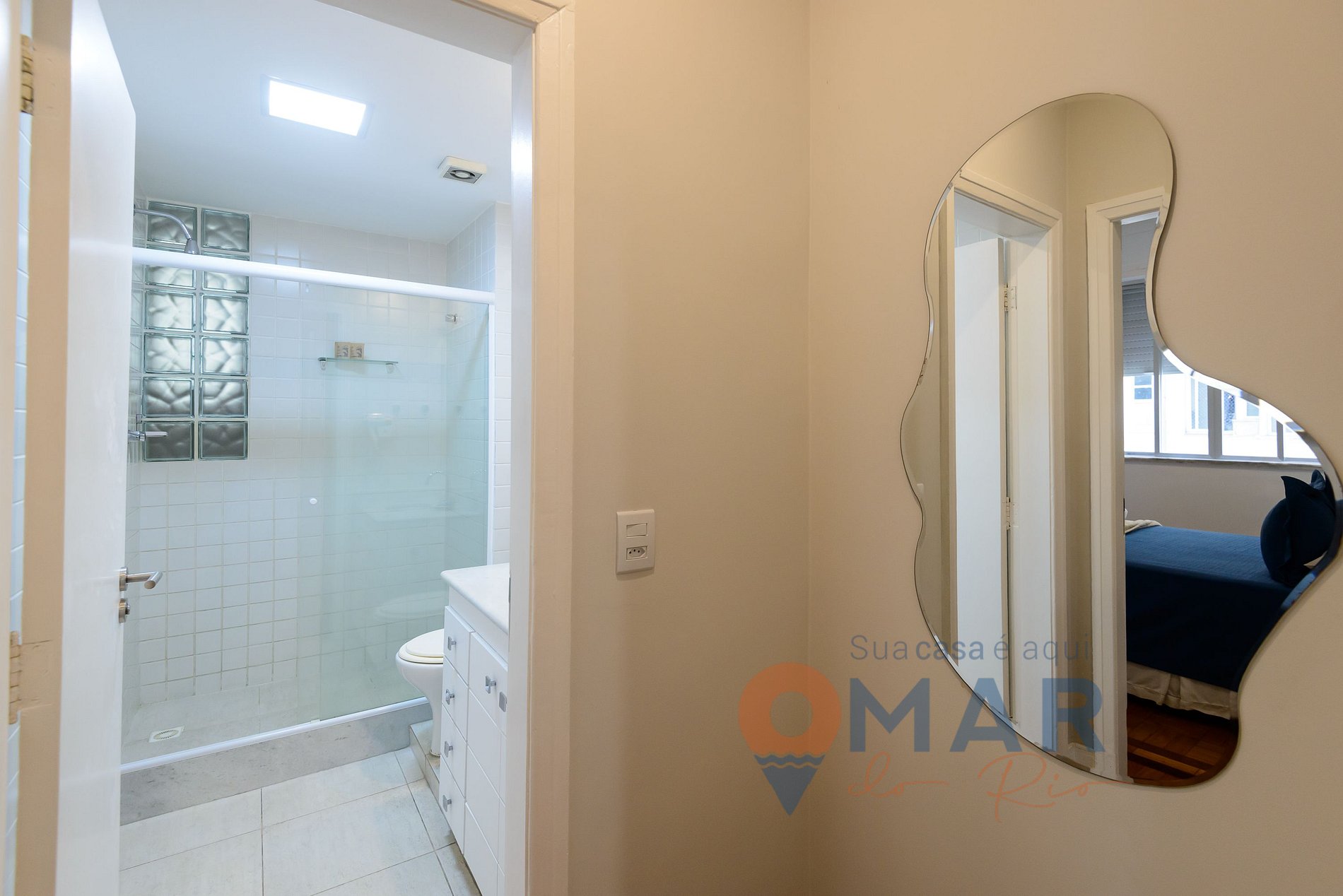 Elegant and spacious apartment in Copacabana, just a 2-minute walk from the beach and 8 minutes from Ipanema. With sea-inspired décor, it is the ideal place for families or groups of friends. It accommodates up to 6 people in 3 comfortable bedrooms, all with air conditioning. It has a Smart TV with channels, Wi-Fi, a fully equipped kitchen, and a privileged location to enjoy the best of Rio in comfort and style.