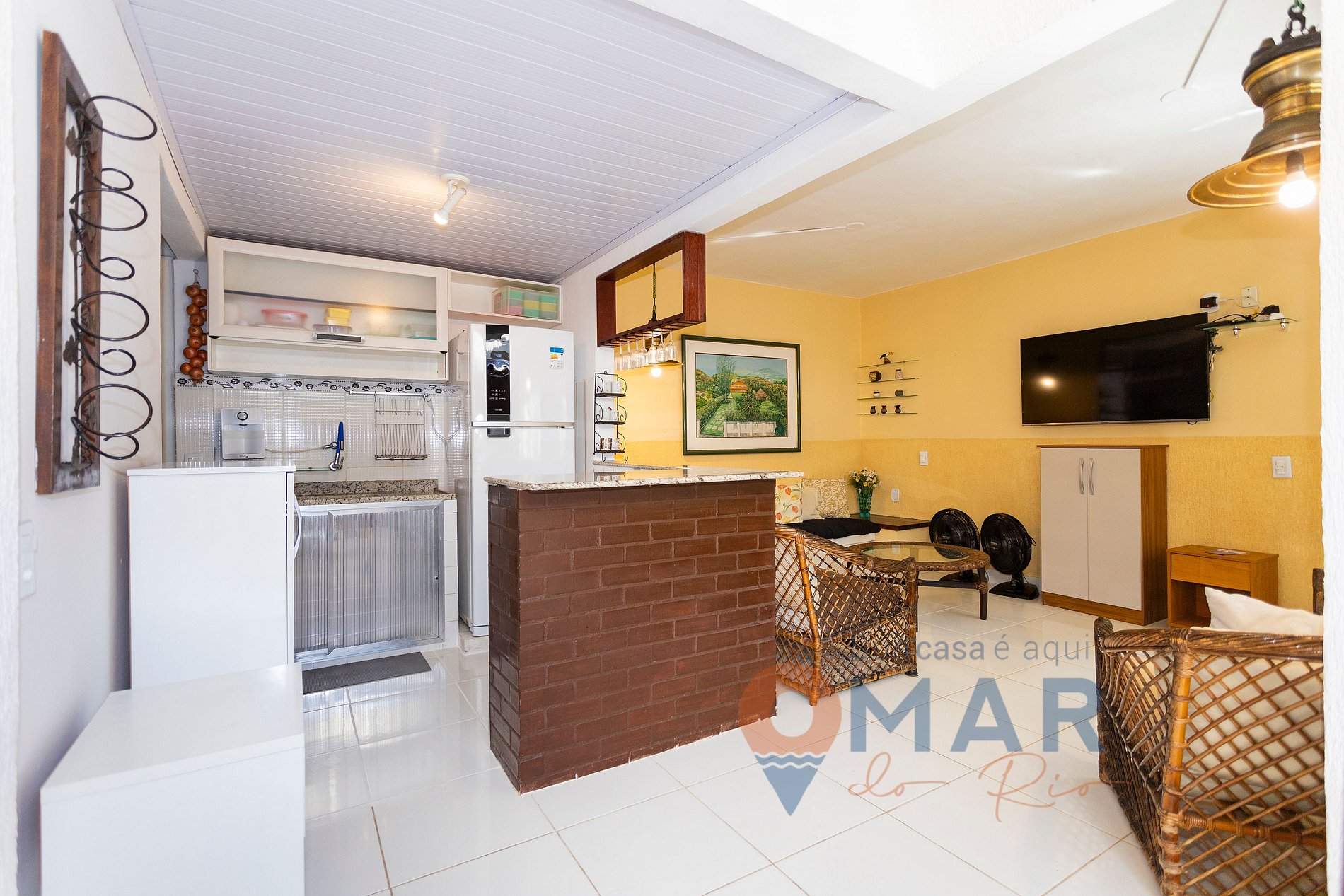 A casa possui churrasqueira, e a piscina é boa, embora necessitasse de limpeza. O condomínio não oferece outros atrativos relevantes. A praia fica a poucos metros, porém é pouco movimentada e sem infraestrutura, sendo mais indicada para passeios rápidos. As praias mais procuradas ficam a cerca de 20 minutos de carro, e a marina está localizada muito próxima, facilitando passeios de barco.