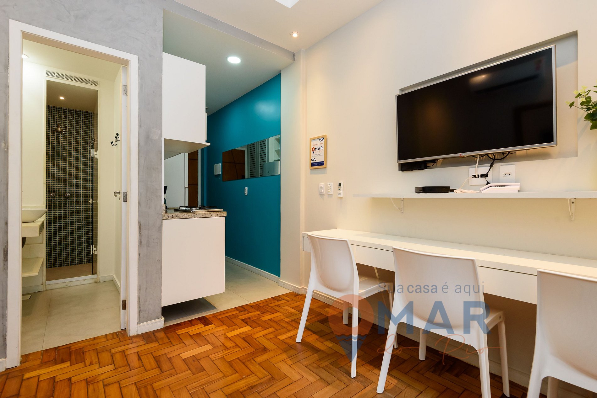 Modern 1BDR with stunning side sea views, just a short distance from the beautiful Copacabana beach. It has an excellent internet connection, perfect for those who need to work remotely or study. The environment is charming, and it also has a well-equipped kitchenette and a workstation, giving you the chance to stay productive without giving up comfort. Practicality and leisure in one place!