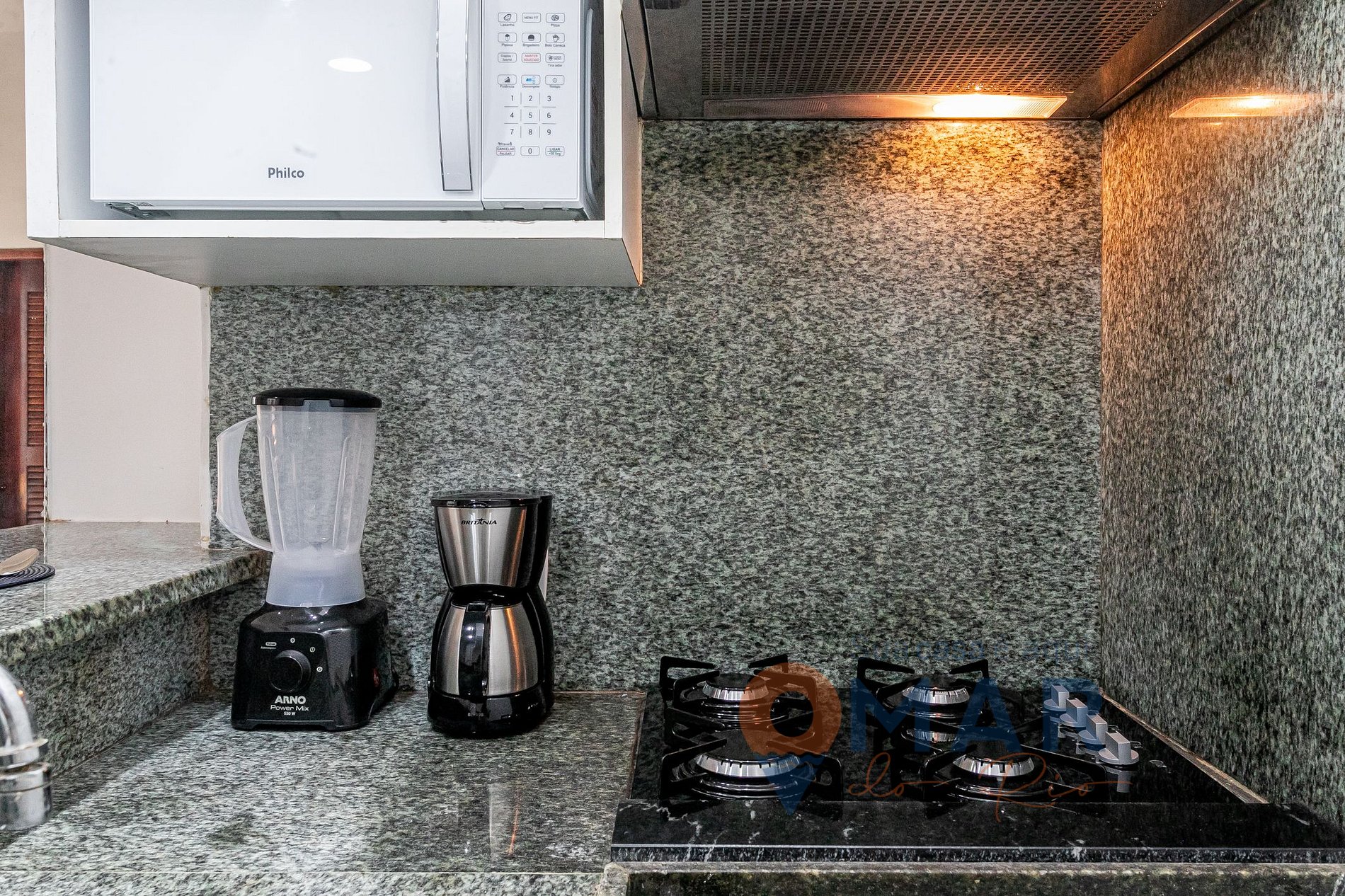 Cocina: minibar, cocina de 4 fuegos, microondas, cafetera eléctrica, licuadora y utensilios de cocina.