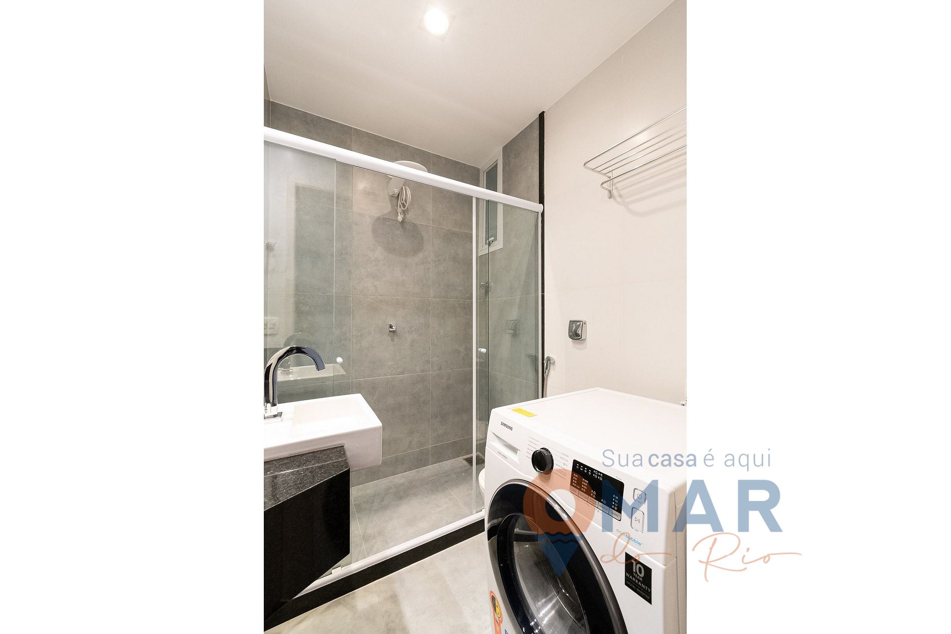El baño es un poco chico, tal vez sería una buena opción mover el lavasecarropas para la cocina que es más amplia.