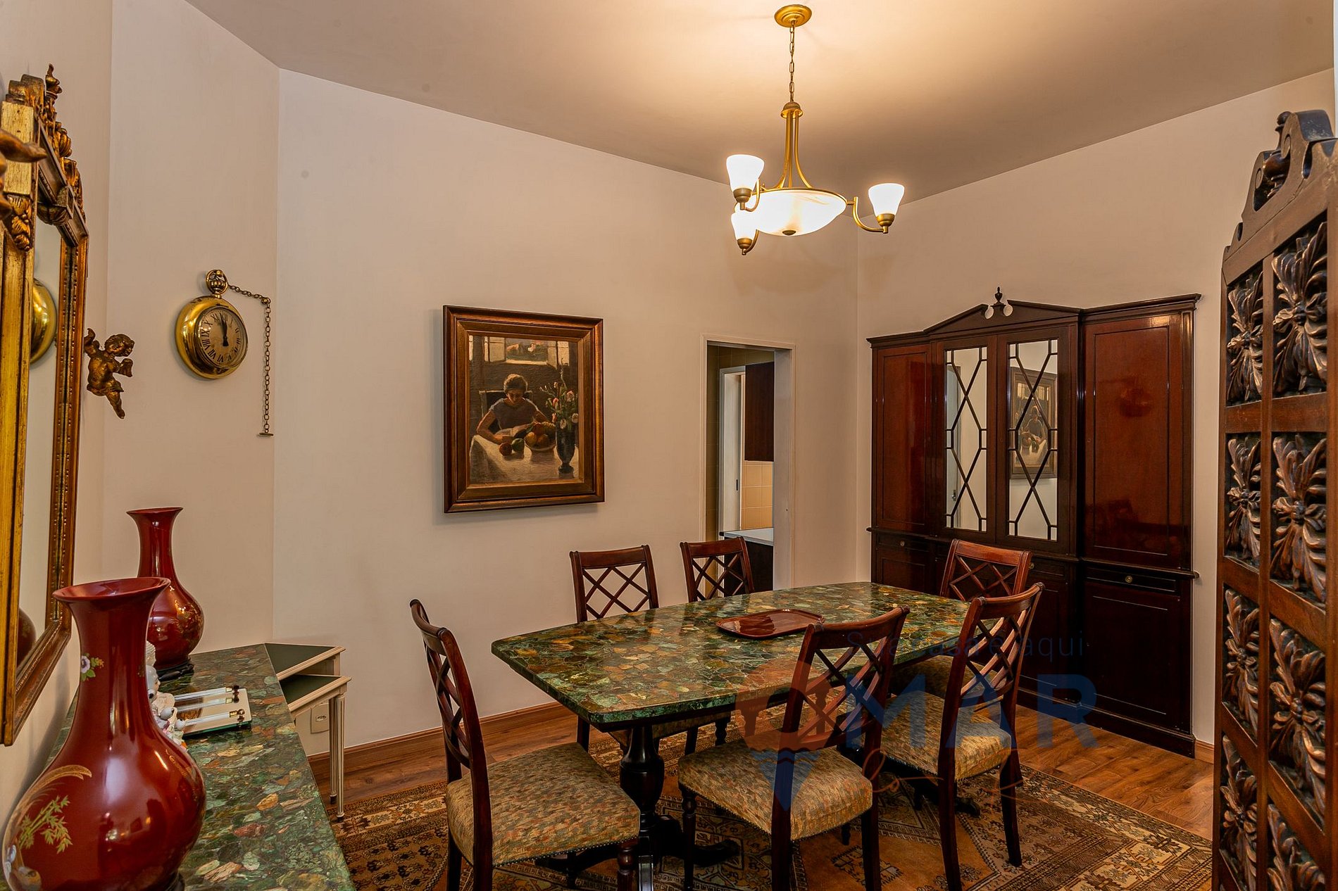 Comedor: Mesa de comedor + 6 sillas y artículos de decoración.