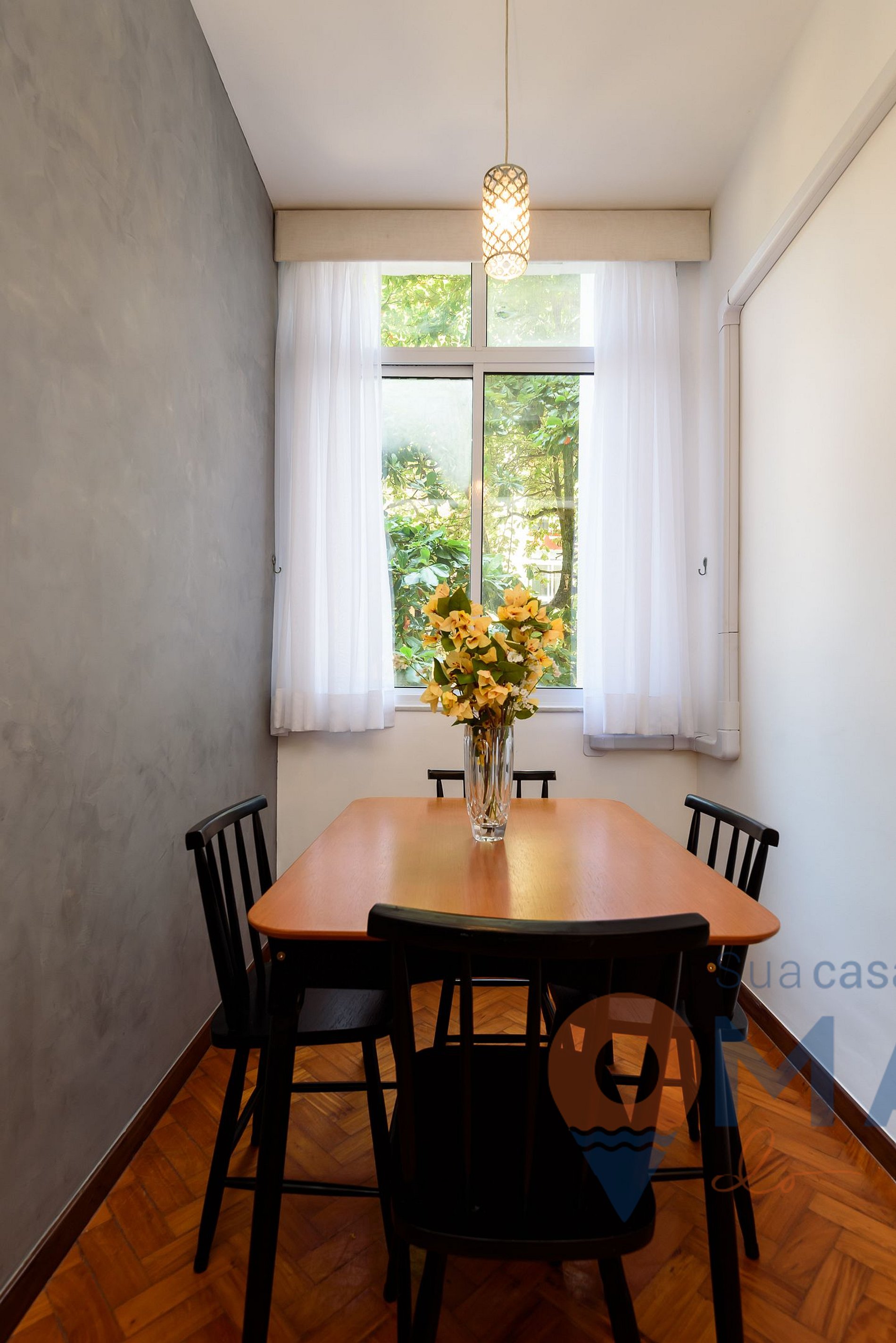 Cortina poderia ser totalmente escura, cozinha um pouco isolada e quente