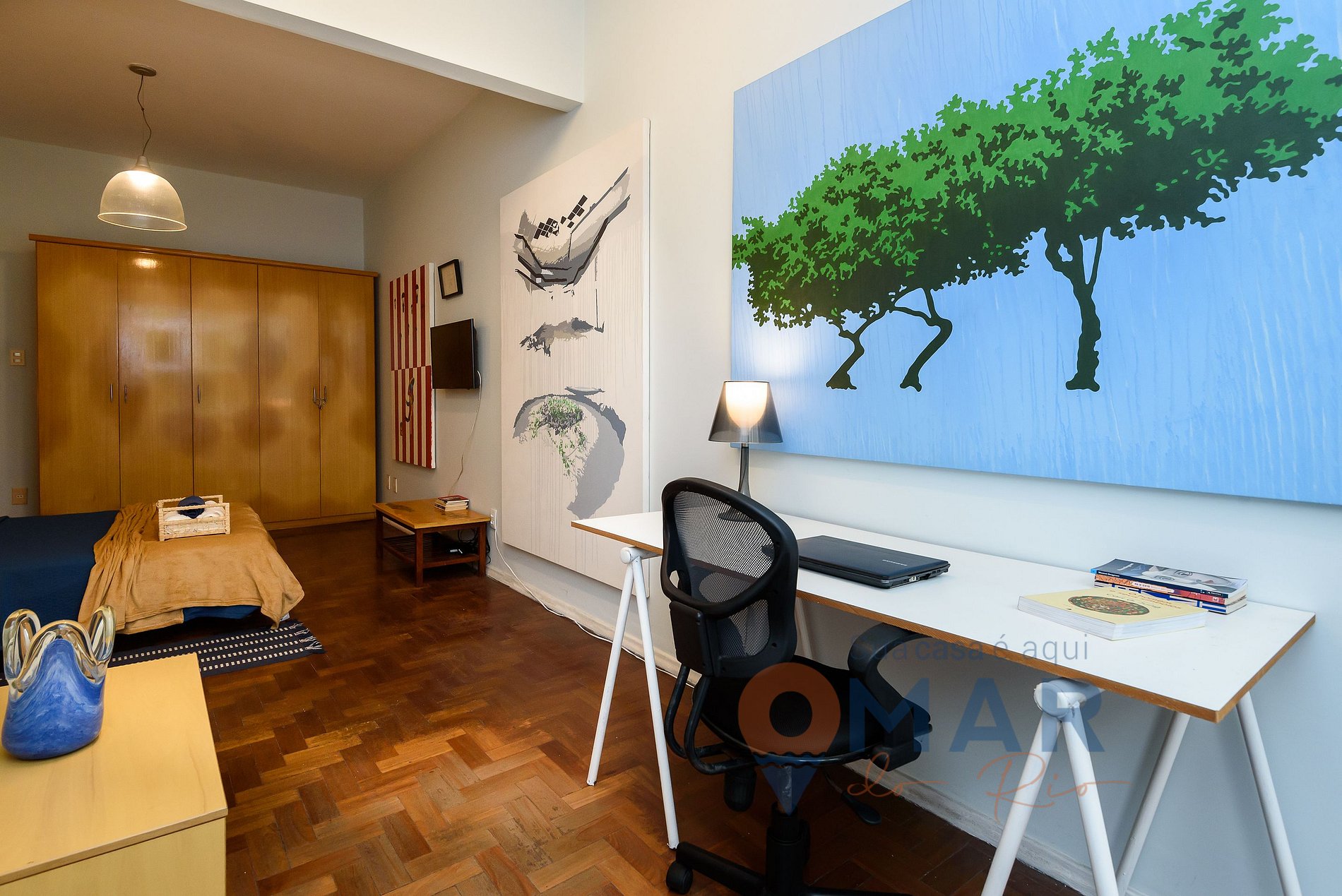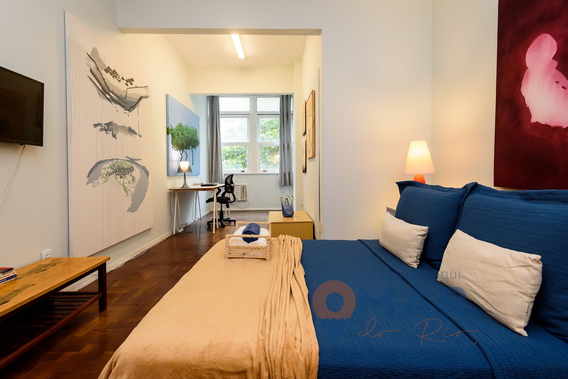 Apartamento quarto e sala localizado a 50m da praia de Copacabana. No interior da acomodação você irá encontrar TV, ar-condicionado, internet de 500mbps, workstation, cozinha completa. Além disso, o condomínio possui portaria 24h. O apartamento é próximo de todos os comércios necessários como mercados, farmácias, academias, restaurantes, lanchonetes e bares.