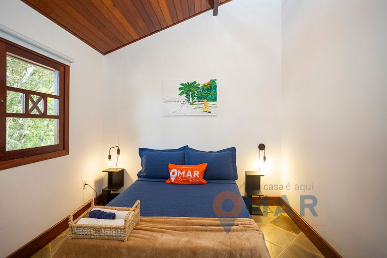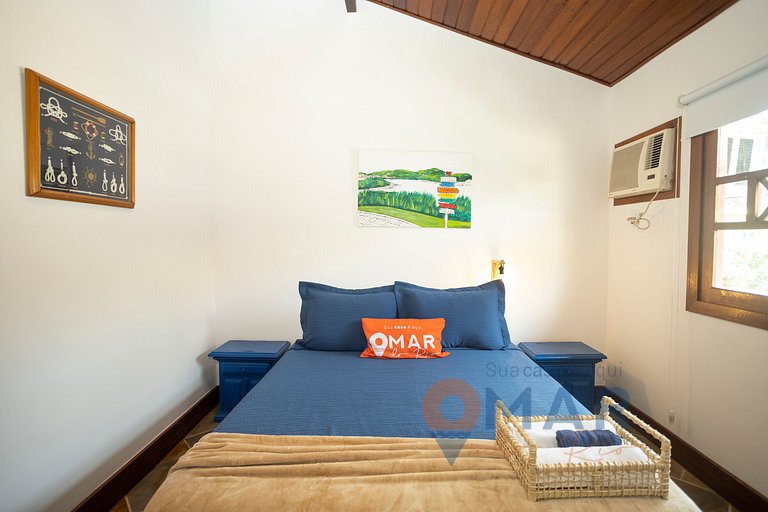 Suíte 2: Cama casal (188cm x 138cm), ar-condicionado split, cômoda, espelho e persiana blackout.
