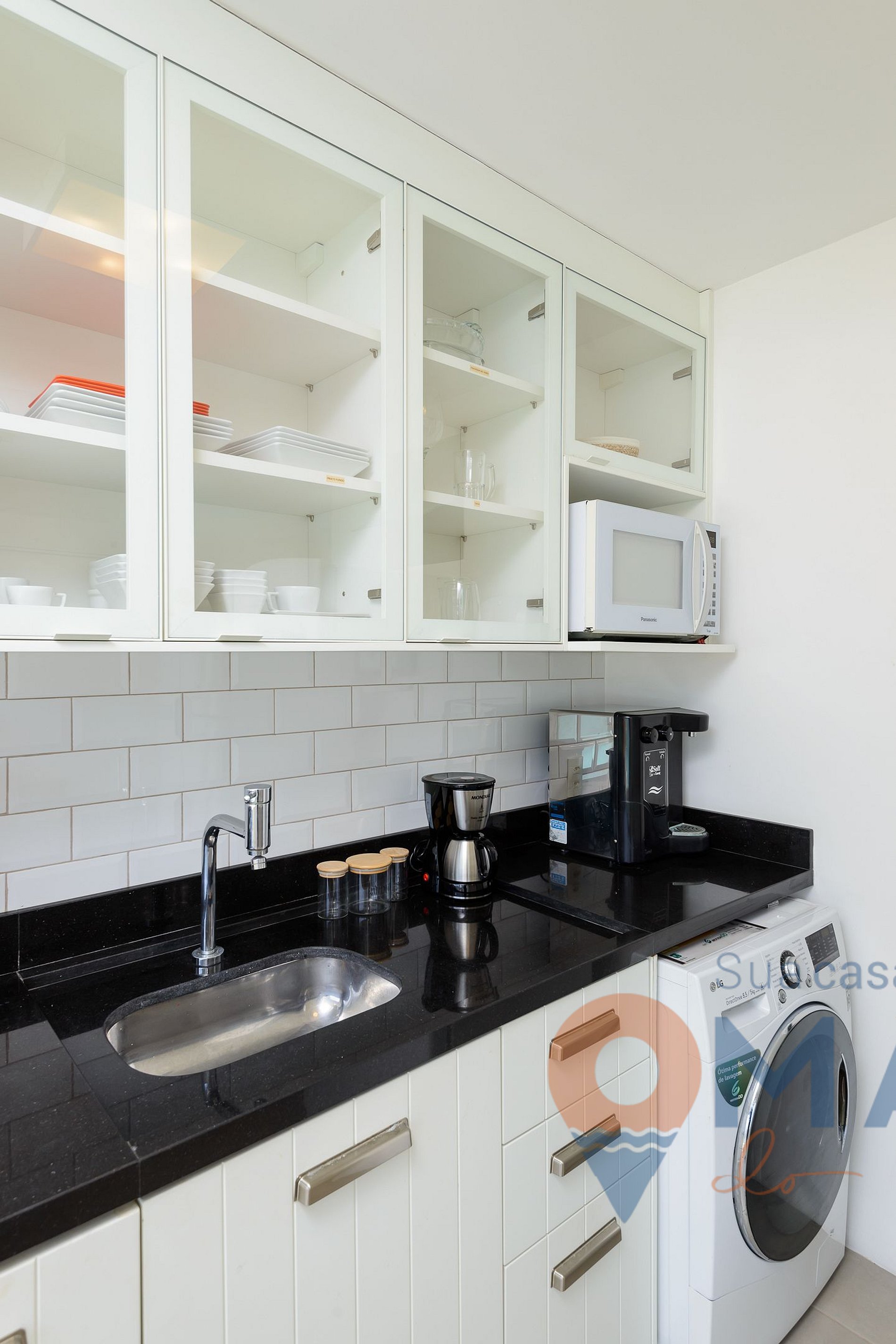 Outros: máquina lava e seca 8,5/5 kg, varal para secar roupas, secador de cabelo e ferro de passar roupa com tábua.