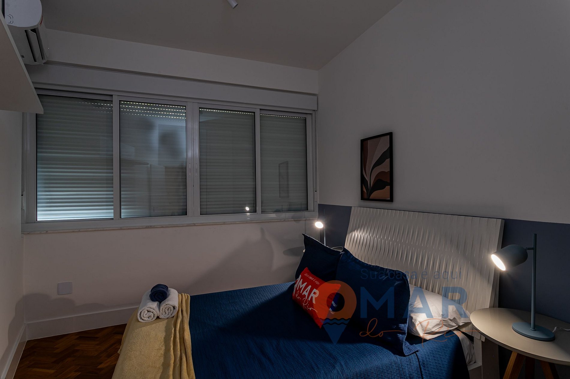 Quarto 2: cama Casal padrão (188cm x 138cm), ar-condicionado, armário fechado e cortina blackout.