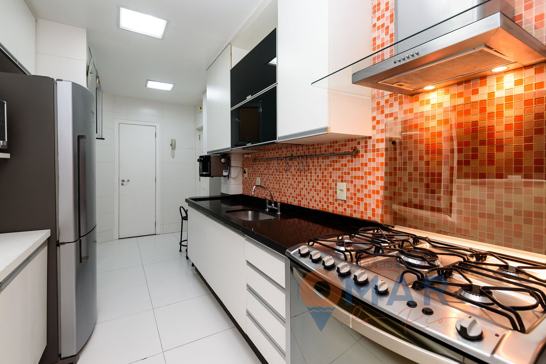 Cozinha: fogão, geladeira, forno, micro-ondas, purificador de água, cafeteira, liquidificador e utensílios.