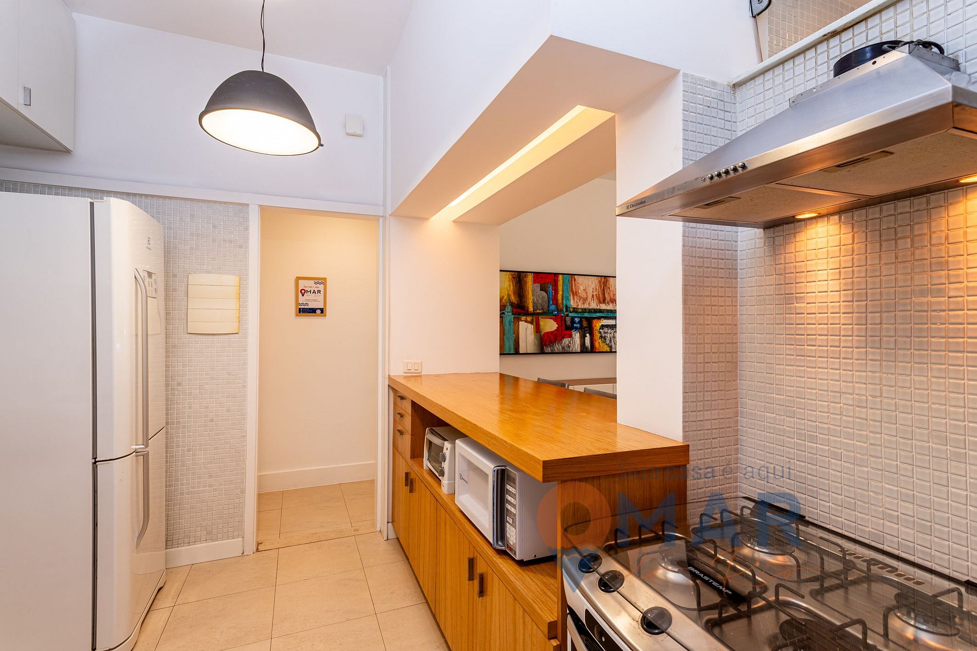 O apartamento é muito bem localizado — a poucas quadras da praia e do metrô, além de ser cercado por restaurantes, mercados e farmácias.