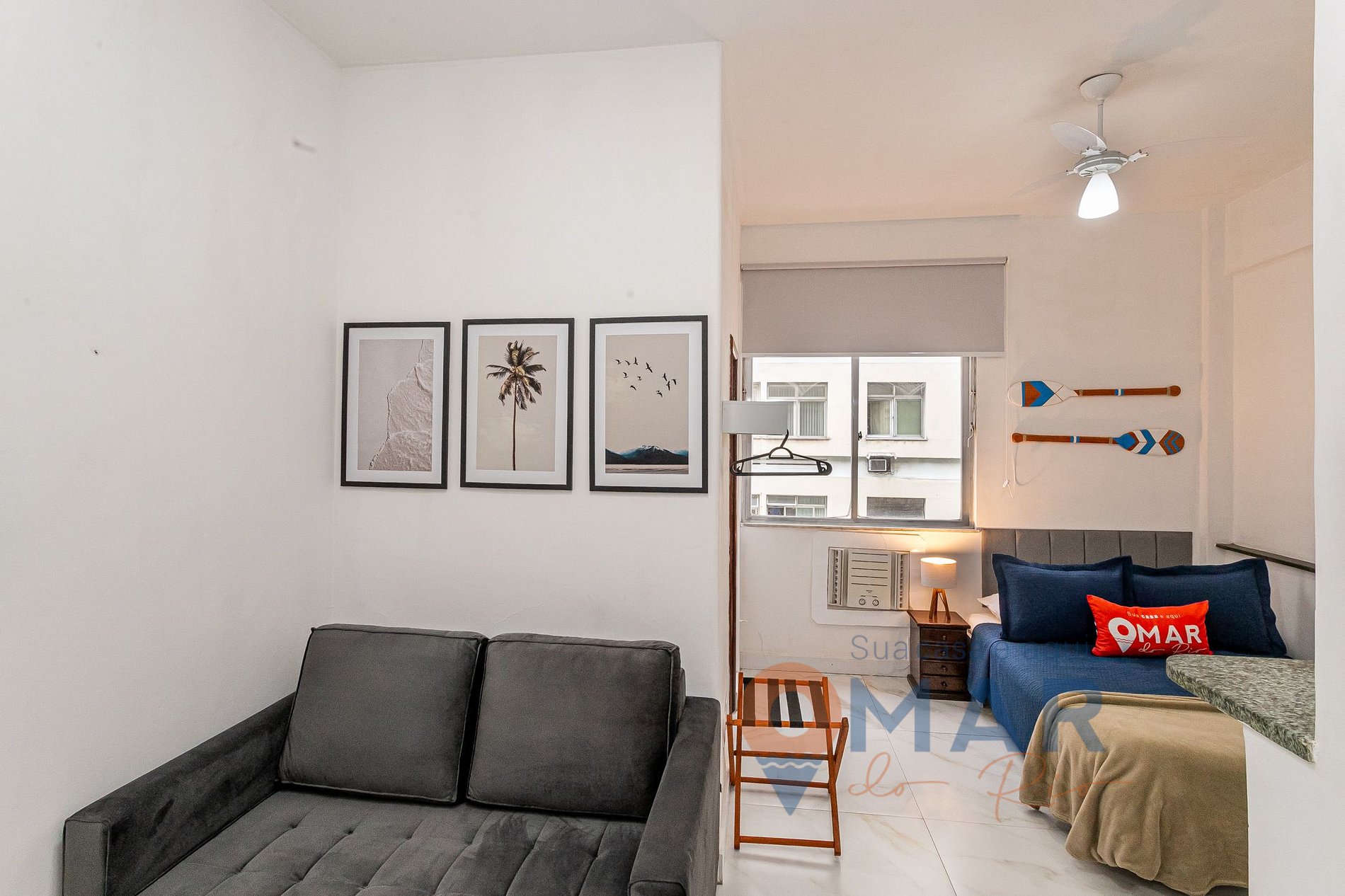 Studio aconchegante em Copacabana, a poucos passos da praia, do Forte de Copacabana e da estação de metrô Cantagalo. Com um toque praiano, excelente localização e vista lateral para o mar, o espaço combina conforto e praticidade. Conta com internet de alta velocidade, ar-condicionado, Smart TV com antena digital, cortina blackout e cozinha totalmente equipada. Ideal para viver o melhor do Rio de Janeiro com estilo e comodidade.