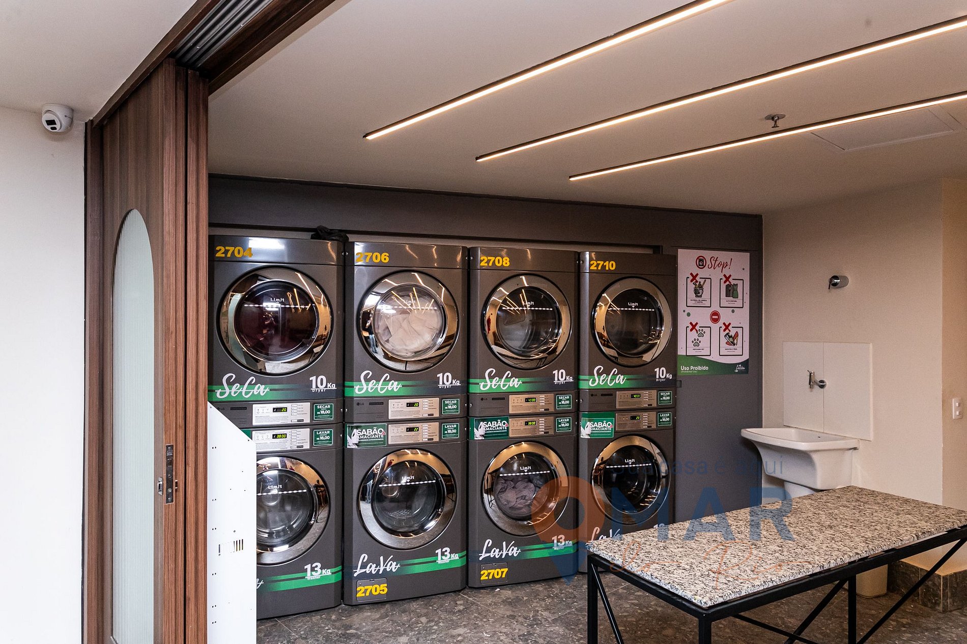 - O condomínio oferece diversas áreas de lazer, como: Lobby, Cooliving, Meeting Room, Game Place, Rooftop (Café), Academia, Sauna, Lavanderia, Rooftop (Terraço).