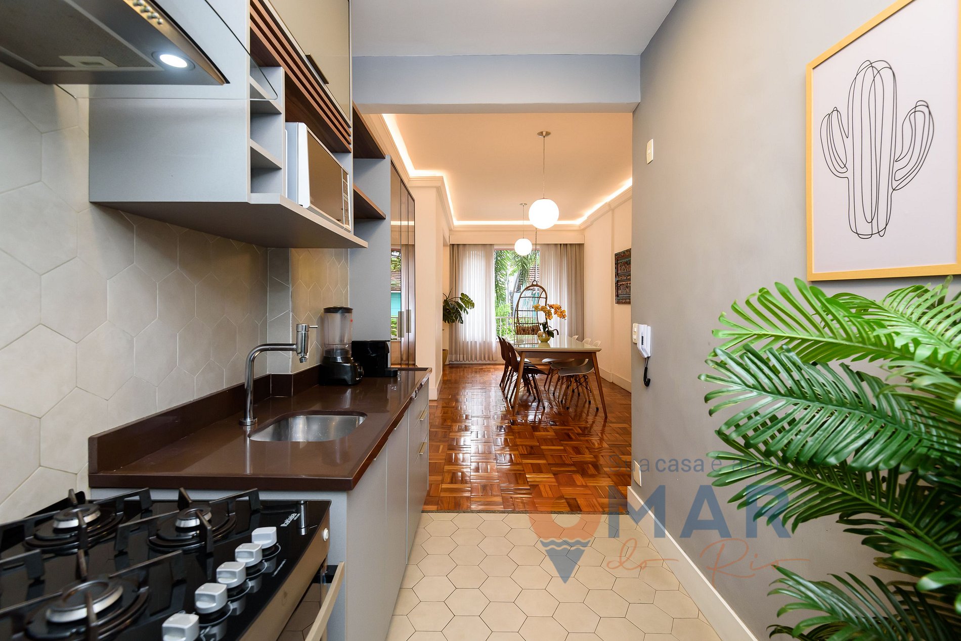 O grande diferencial deste imóvel é sua configuração: ele funciona como dois apartamentos em um só, oferecendo mais privacidade e autonomia para grupos ou famílias. São 3 quartos bem distribuídos, Smart TV, internet de alta velocidade, ar-condicionado em todos os quartos e sala, cozinha completa, estação para trabalho, e até um cantinho com balanço e rede para relaxar. Um espaço pensado para que você se sinta em casa no Rio!