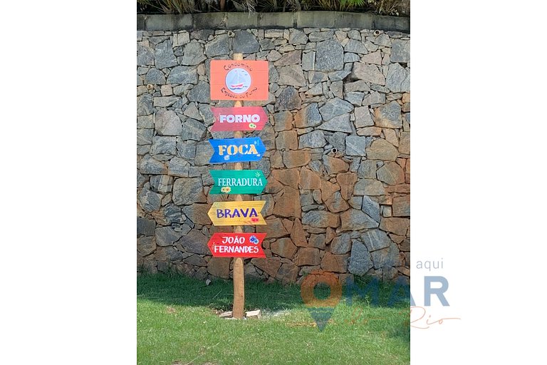 La casa se encuentra en un condominio tranquilo, con buenas instalaciones y la zona es tranquila y segura. Está justo en frente a Praia do Forno y a minutos de Praia Brava. Se llega caminando a Rua das Pedras, en 15 minutos. La casa es completa, no le falta nada y con un quincho cómodo para cocinar.