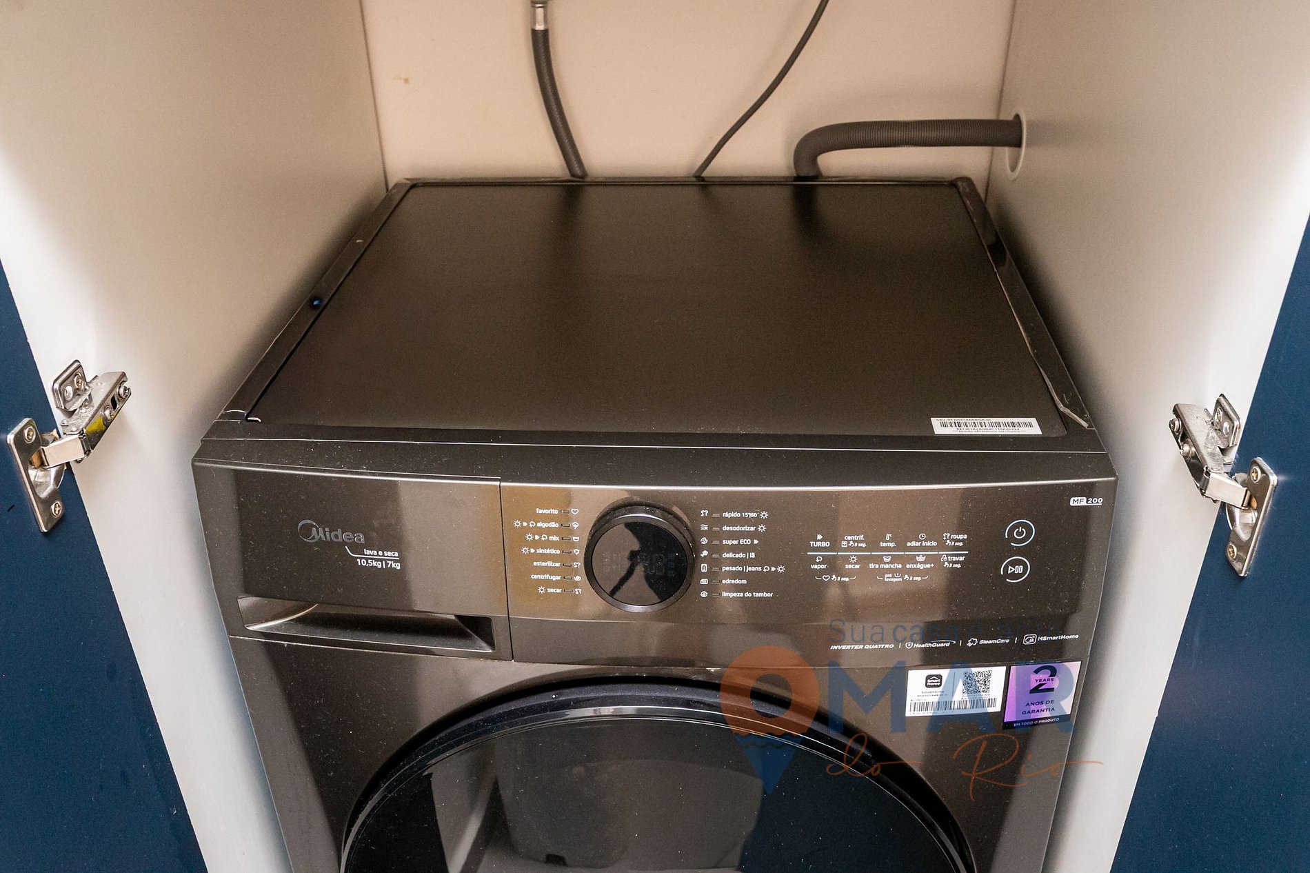 Outros: máquina lava e seca 10,5kg /7kg, secador de cabelo, varal para secar roupas, aspirador de pó, steamer (vaporizador de roupa) e ferro de passar roupas com tábua.