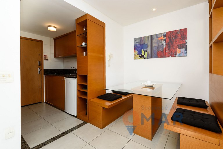 I stayed in the property for over a month at the end of 2022. As described on the AirBnB site, and well managed by the team at O Mar that were always attentive throughout my stay. Keypad entry simplifies check-in. The studio offers good value accommodation, especially for longer stays, for individuals or a couple in Rio on business or pleasure.