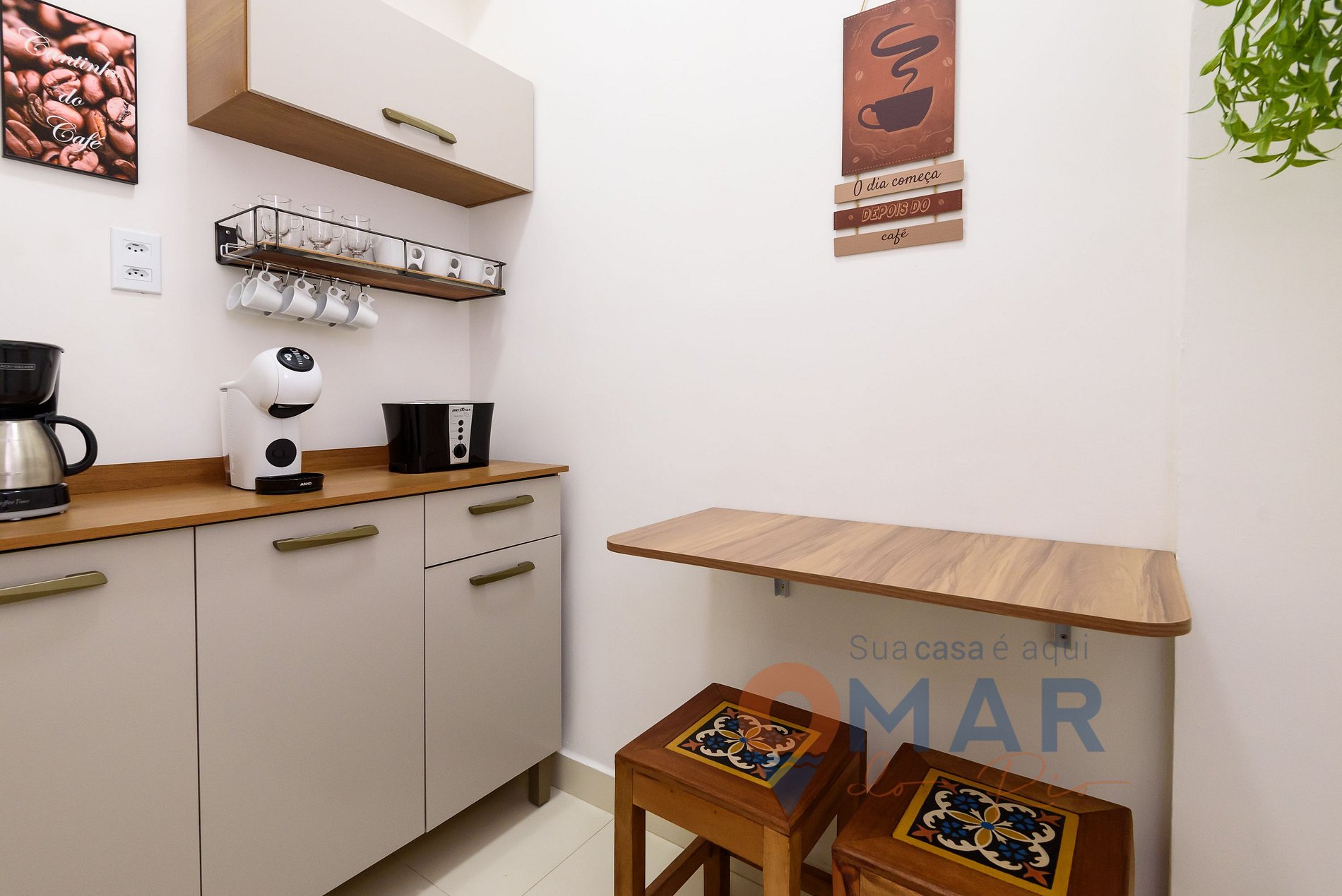 Cozinha: geladeira, cooktop 4 bocas, forno, máquina de café expresso Dolce Gusto, cafeteira, liquidificador, micro-ondas.