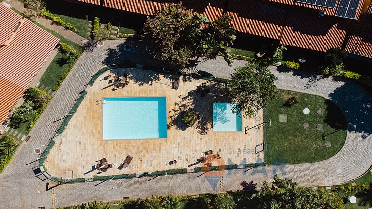 A praia de Geribá está a poucos minutos à pé, mas possui fácil acesso ao centro de uber/táxi.