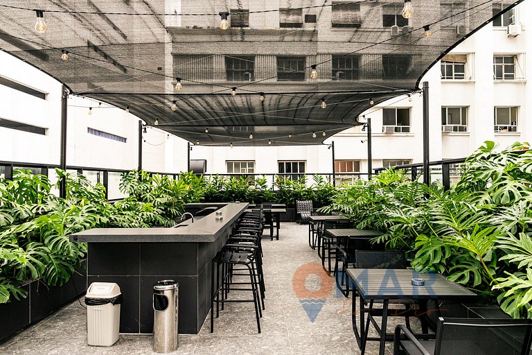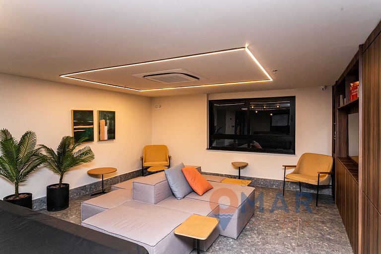 - O condomínio oferece diversas áreas de lazer, como: Lobby, Cooliving, Meeting Room, Game Place, Rooftop (Café), Academia, Sauna, Lavanderia, Rooftop (Terraço).