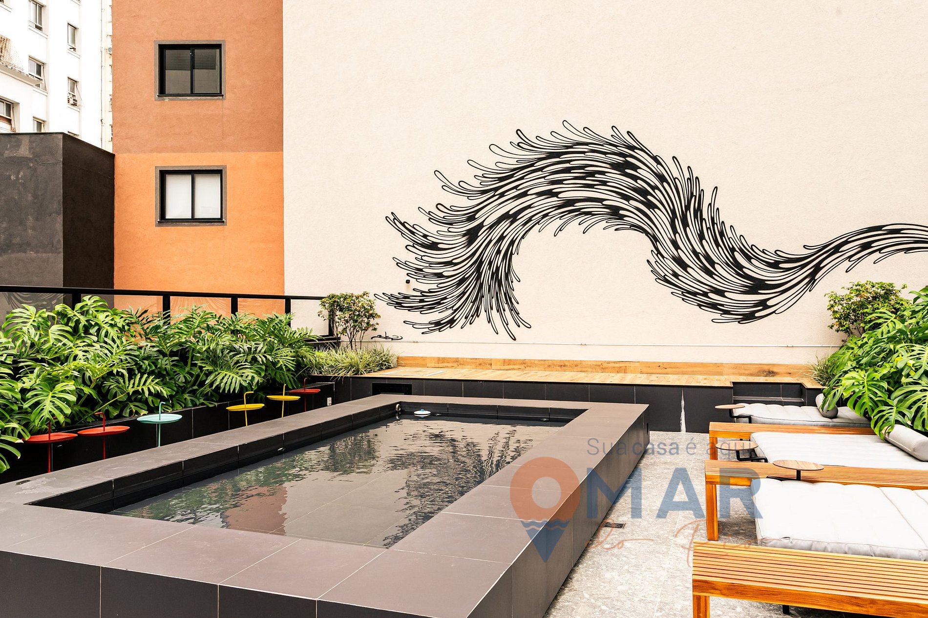 - O condomínio oferece diversas áreas de lazer, como: Lobby, Cooliving, Meeting Room, Game Place, Rooftop (Café), Academia, Sauna, Lavanderia, Rooftop (Terraço).