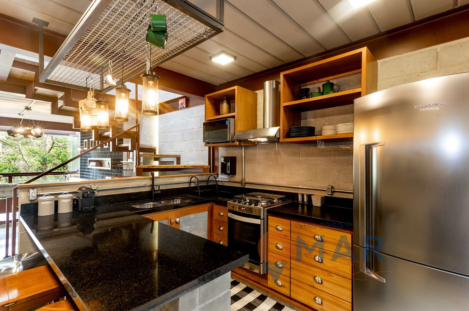 Além de toda a decoração industrial, que é de muito bom gosto, não posso deixar de mencionar a Poltrona Mole, assinada pelo Design Sergio Rodrigues, ela está posicionada bem perto da varanda, na sala, onde atrás tem um 'quadro' natural ( uma mata densa e preservada), vale a pena a contemplação e também fazer algumas fotos.