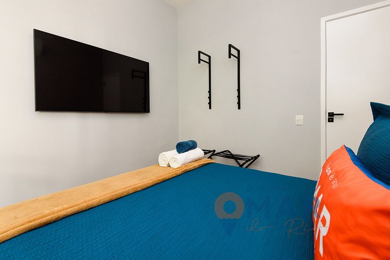 Quarto 2: Cama Queen Size (198cm x 158cm),ar-condicionado, ventilador de teto, Smart TV, arara de roupas com cabides, porta mala e cortina blackout.