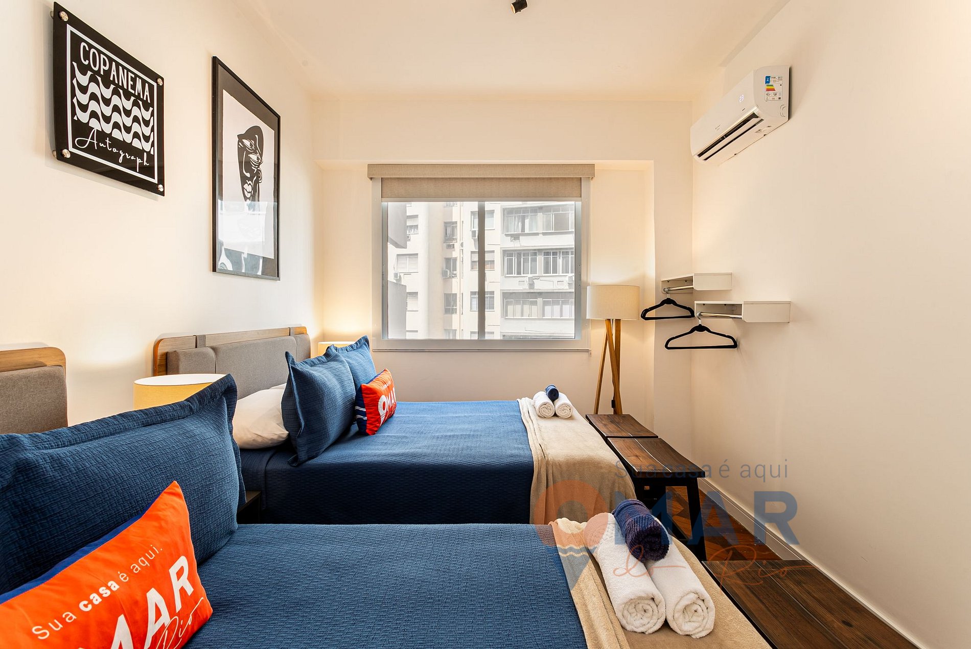 Copacabana está situada na deslumbrante Zona Sul do Rio de Janeiro, sendo amplamente reconhecida por sua maravilhosa praia e um calçadão exuberante revestido com pedras portuguesas brancas e pretas, que formam um mosaico no formato de ondas do mar. Além dessa beleza natural, uma variedade de conveniências aguarda a poucos passos, incluindo mercados, farmácias, restaurantes, lanchonetes e bares, tornando a estadia ainda mais confortável e prática.