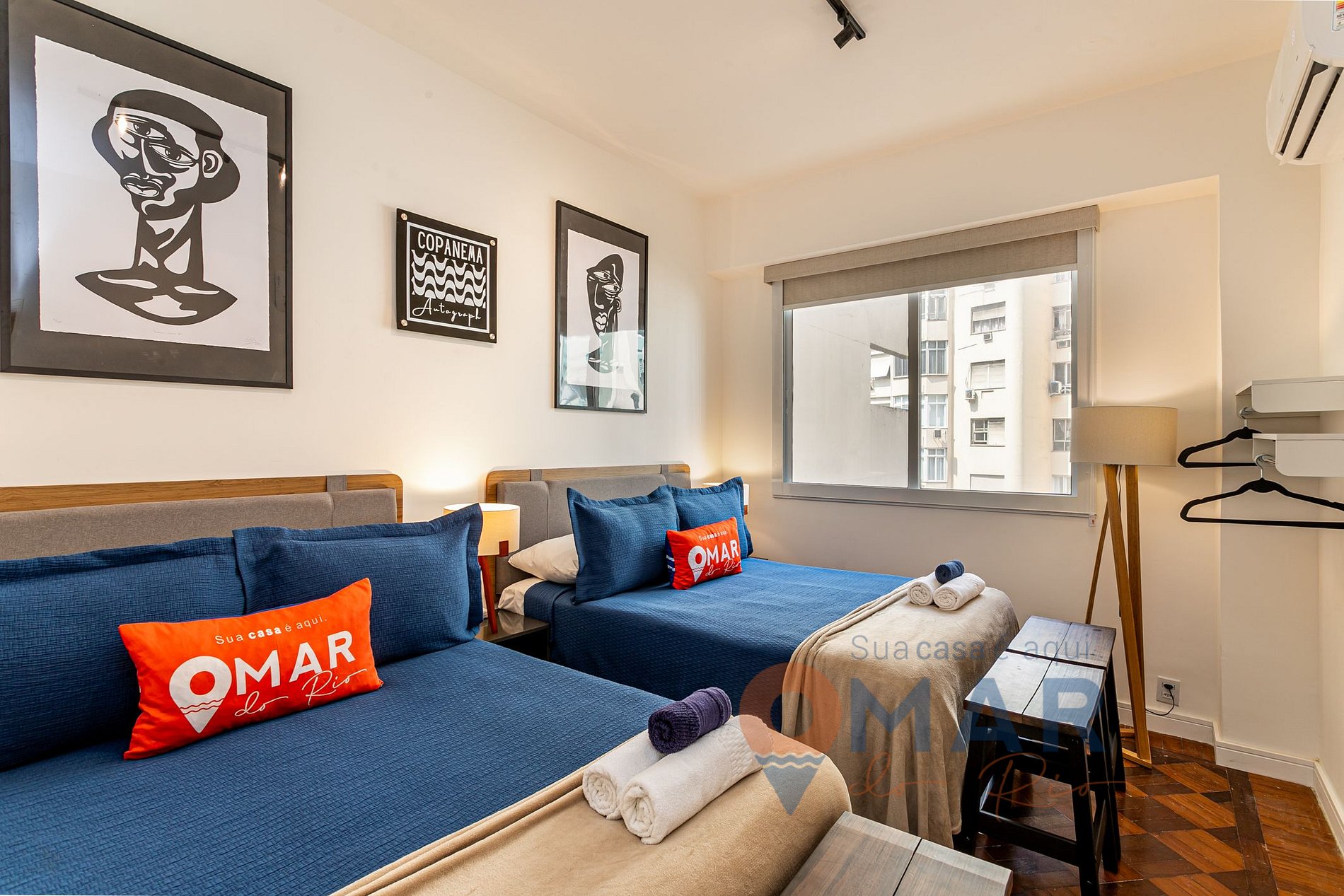 Copacabana está situada na deslumbrante Zona Sul do Rio de Janeiro, sendo amplamente reconhecida por sua maravilhosa praia e um calçadão exuberante revestido com pedras portuguesas brancas e pretas, que formam um mosaico no formato de ondas do mar. Além dessa beleza natural, uma variedade de conveniências aguarda a poucos passos, incluindo mercados, farmácias, restaurantes, lanchonetes e bares, tornando a estadia ainda mais confortável e prática.